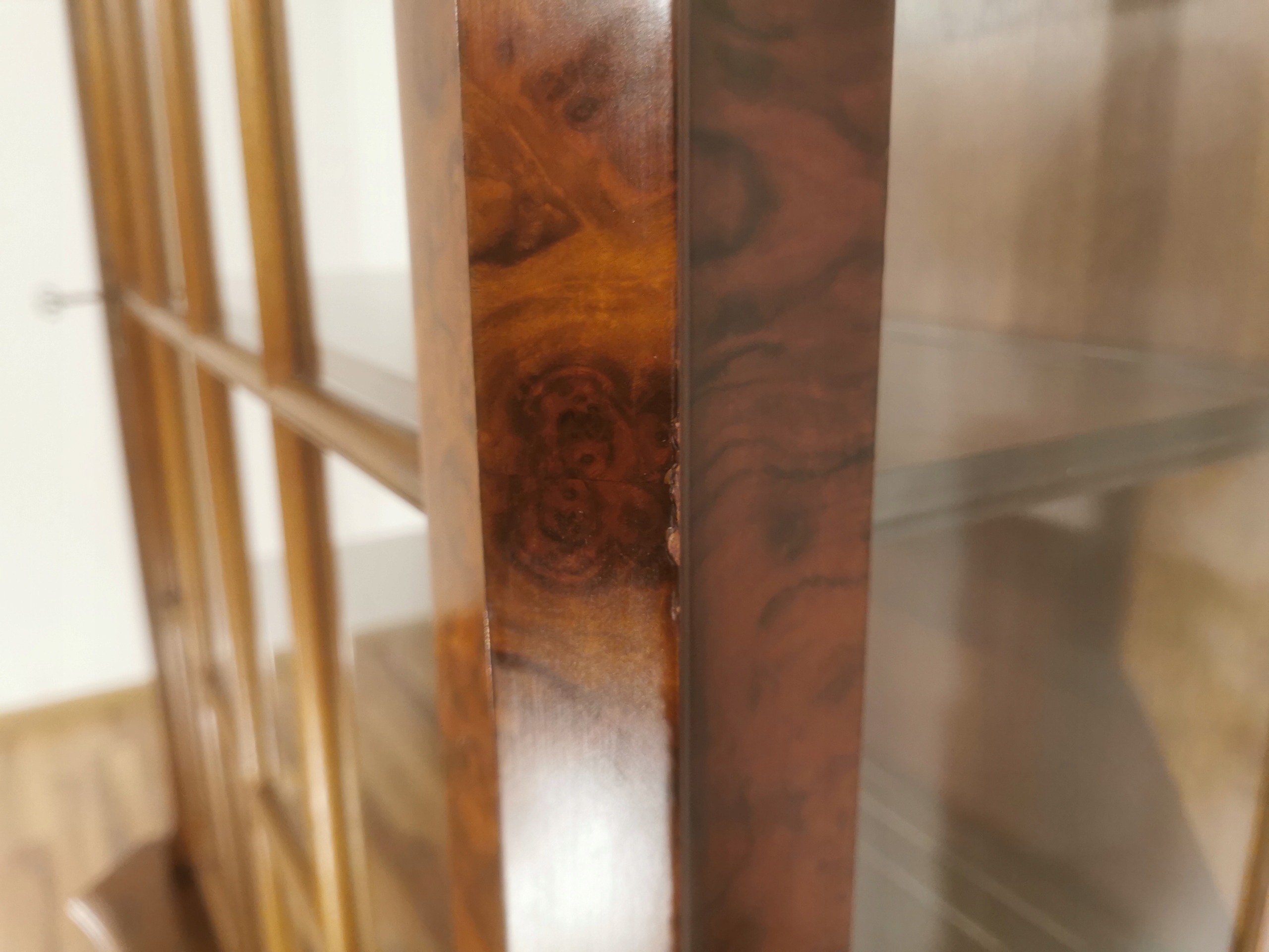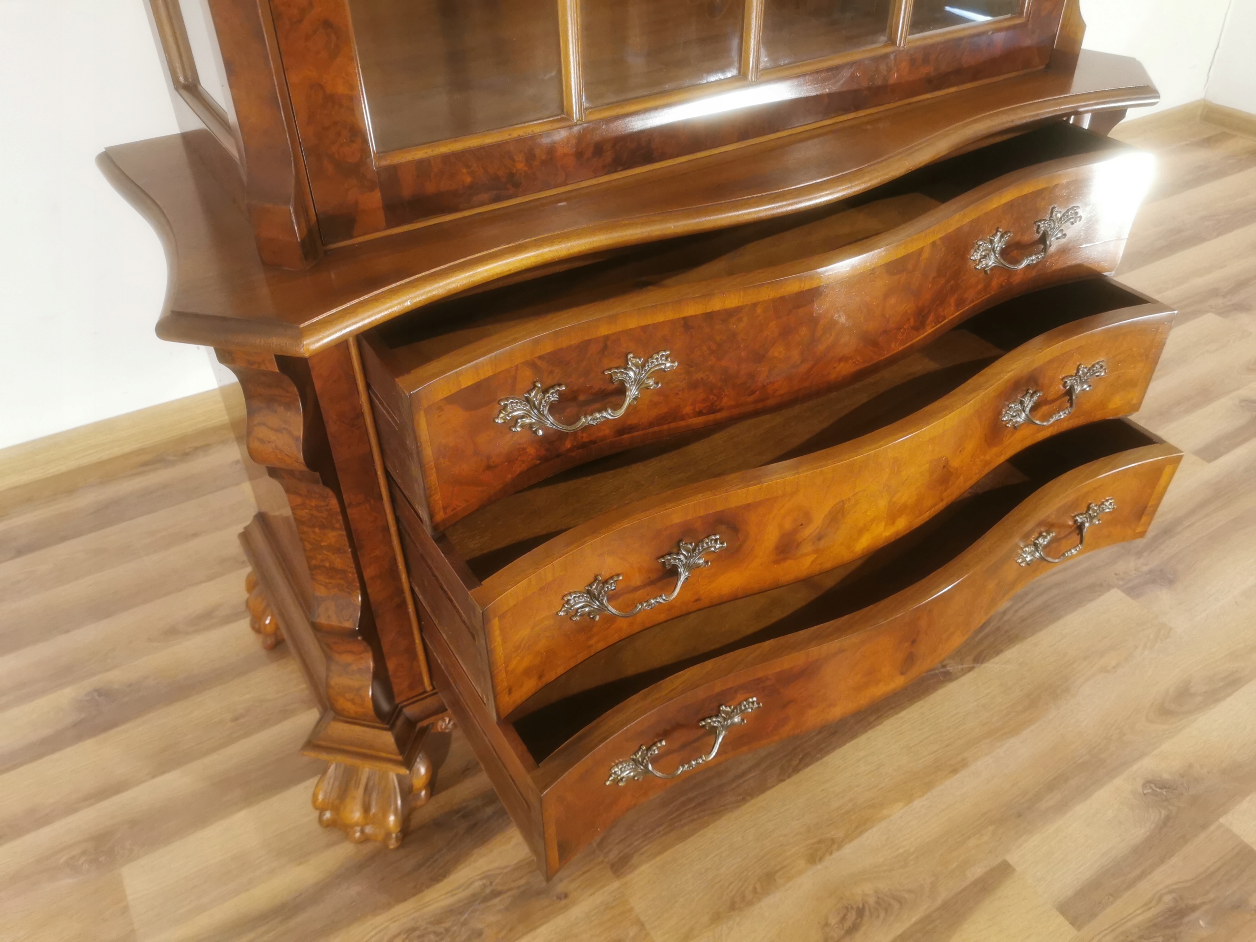 Библиотека имеет корону, профилированную Falista с декоративным карнизом и древесным течением. Wystrin-Servant заперт. Калифорнийский орех проверил шпон украшен. CM
