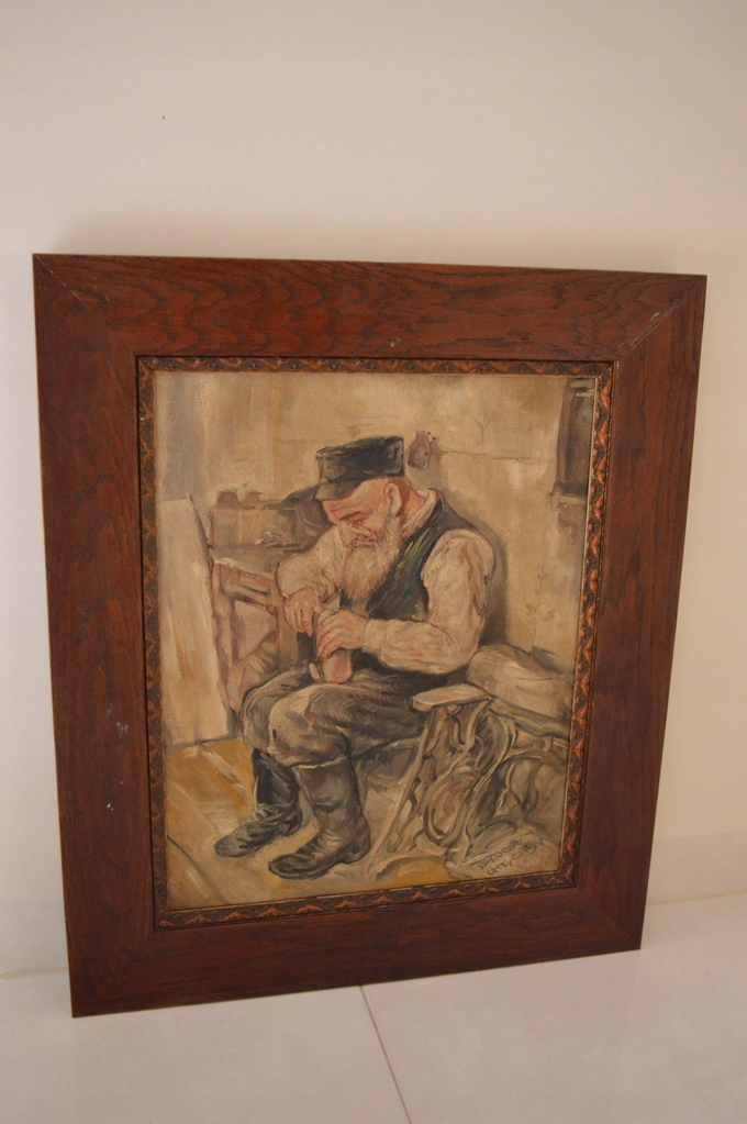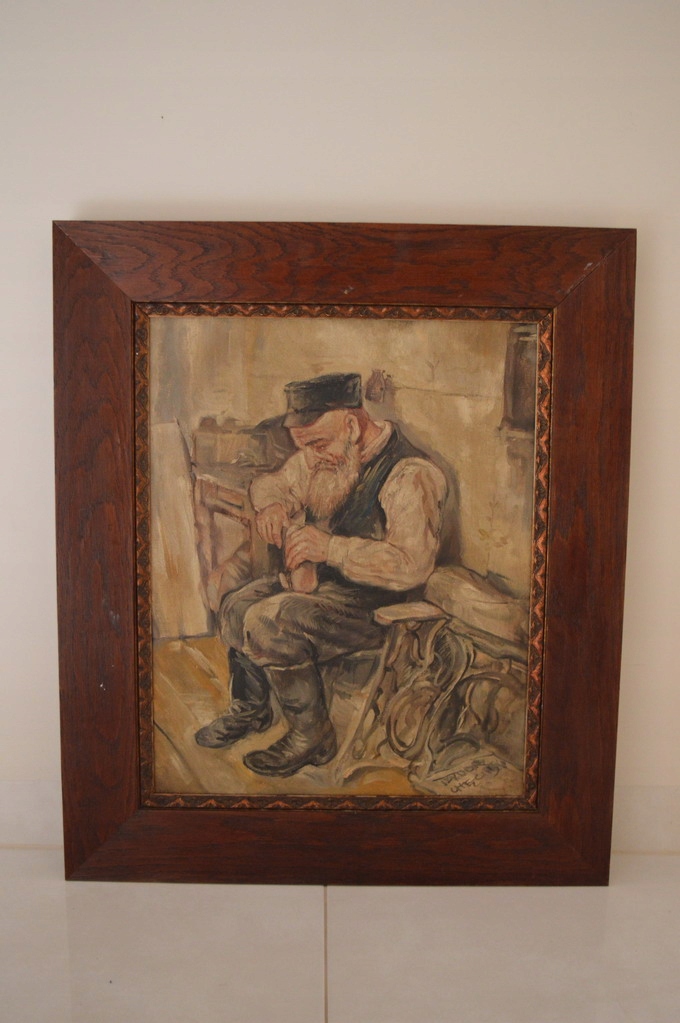 ЕВРЕЙ САПОЖНИК-ДОВОЕННАЯ КАРТИНА МАСЛОМ-ГАЛЕРЕЯ