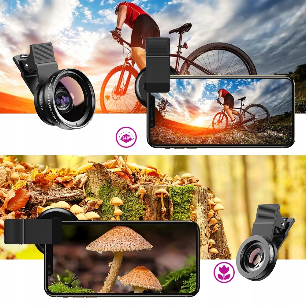 Встановіть макрофільтр об’єктива 2 в 1 12,5x і ширококутний 0,45x для телефону