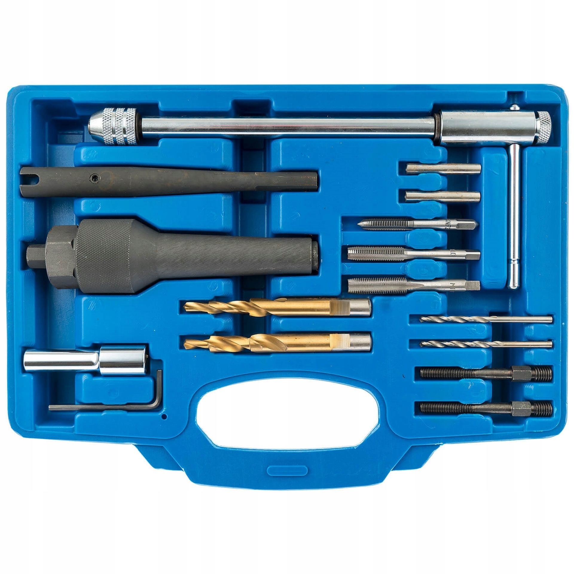 - Набор включает в себя все необходимые адаптеры, инструменты для центрирования и очистки резьбы, необходимых для удаления старой или поврежденной заглушки, без повреждения головки цилиндра.