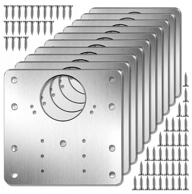 Пластина имеет множество отверстий, поэтому она подходит к большинству петель и мебели, доступных на рынке.