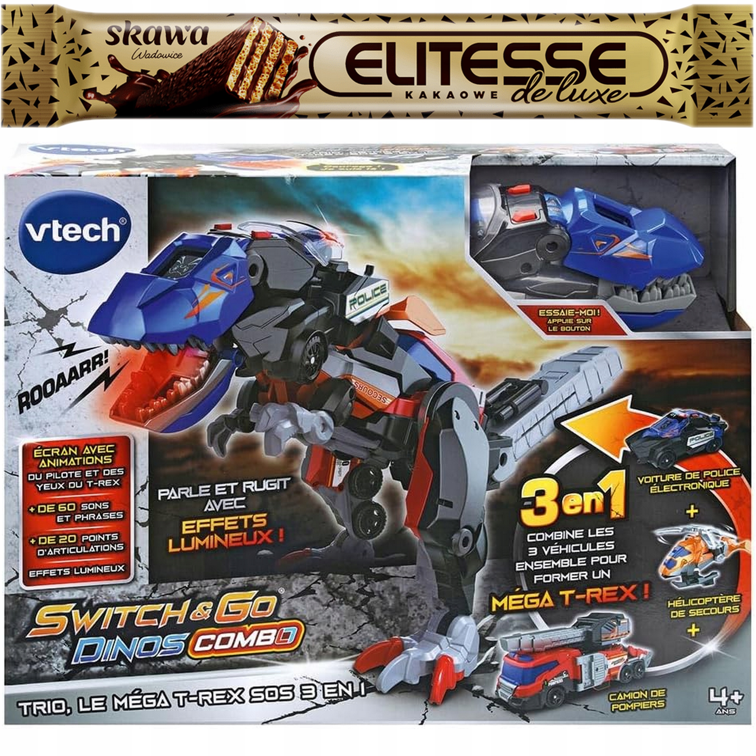 ➡️➡️⭐️⭐vtech - Switch & Go Dinos Combo, Dinosaur Trio, Mega T -Rex SOS 3 in 1, police car, fire truck, helicopter, articulated dinosaur toy, gift for children from 4 years - content in h1> Manufacturer: VTech h2> version: French