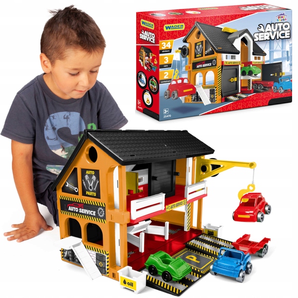 Игрушки Wader из серии Play House знакомят детей с окружающей действительностью и дают возможность узнать о различных профессиях. Play House Auto Serwis — двухэтажный дом со множеством подвижных элементов, таких как открывающаяся дверь, лифт, кран.