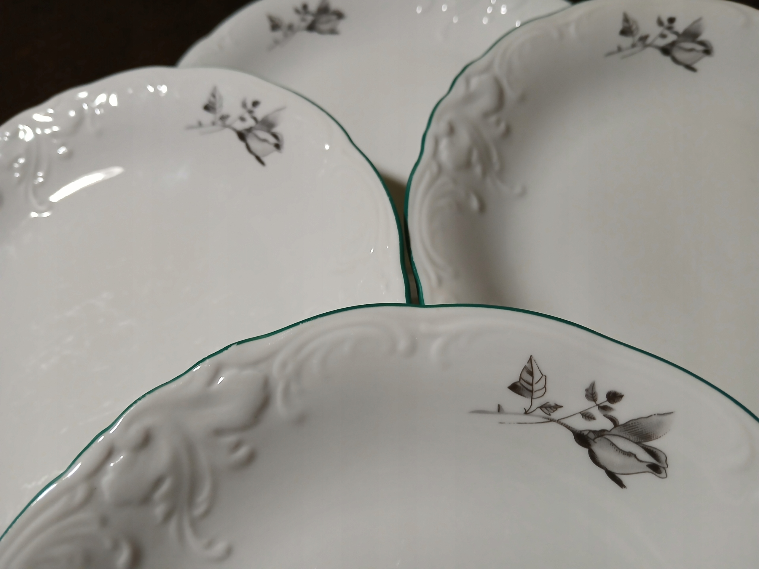 WAWEL FRYDERYKA 4 TALERZYKI DESEROWE SZARA RÓŻA STARA PORCELANA VINTAGE PRL