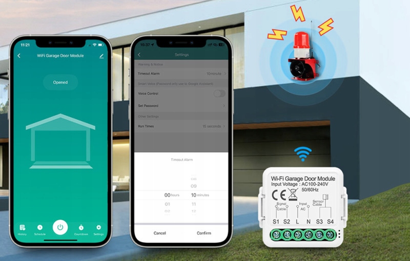 Модуль гаража tuya wifi позволяет дистанционно управлять гаражным воротом через мобильное приложение или использование простых голосовых команд. Благодаря этому вам больше не нужно покидать машину, чтобы войти в гараж. Более того, диапазон работы составляет около 100 метров, поэтому вы можете открыть ворота для гостей, не вставая с дивана! После подключения к приложению приложения Smart Life/Tuya вы можете контролировать свои ворота с телефона или планшета, а также использовать Google Assistant или Alex Voice Assistant. Контроллер также поддерживает функцию геозоны, благодаря которой ворота могут открыться для вашего прибытия дома, а также автоматически закрывается, как только вы уйдете. Если возникает ошибка, и ворота не закроется по какой -то причине, вы немедленно получите уведомление для вашего телефона