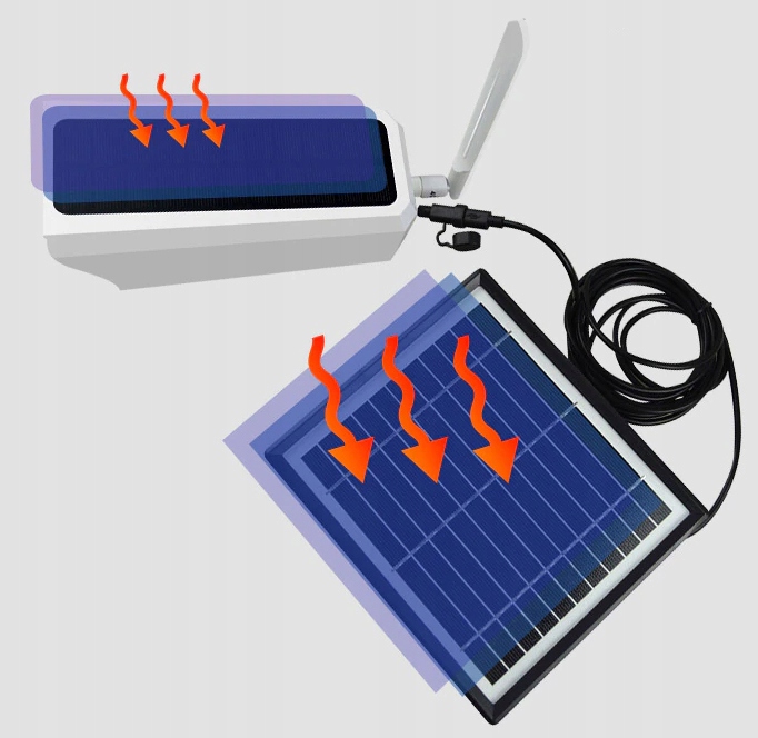 Солнечная панель на камере и дополнительная внешняя солнечная панель, подключенная к разъему MicroUSB, собирает энергию от солнца, предоставляя камеру энергию, необходимую для работы, которая хранится в 4 батареях 18650 с общей емкостью 10 000 мАч.