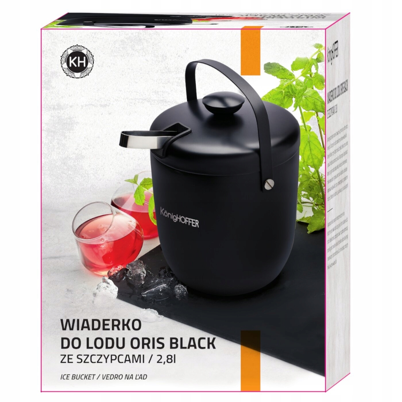 WIADERKO DO LODU pojemnik NA KOSTKI lodu cooler + SZCZYPCE Oris 2,8L CZARNE