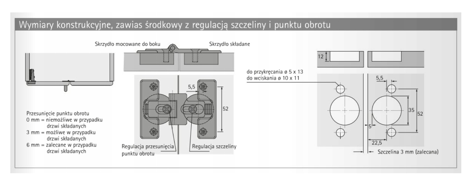Центральный шарнир для складных дверей с крыльями, с регулировкой точки разрыва и оборота, для винта (2 ПК) hettich