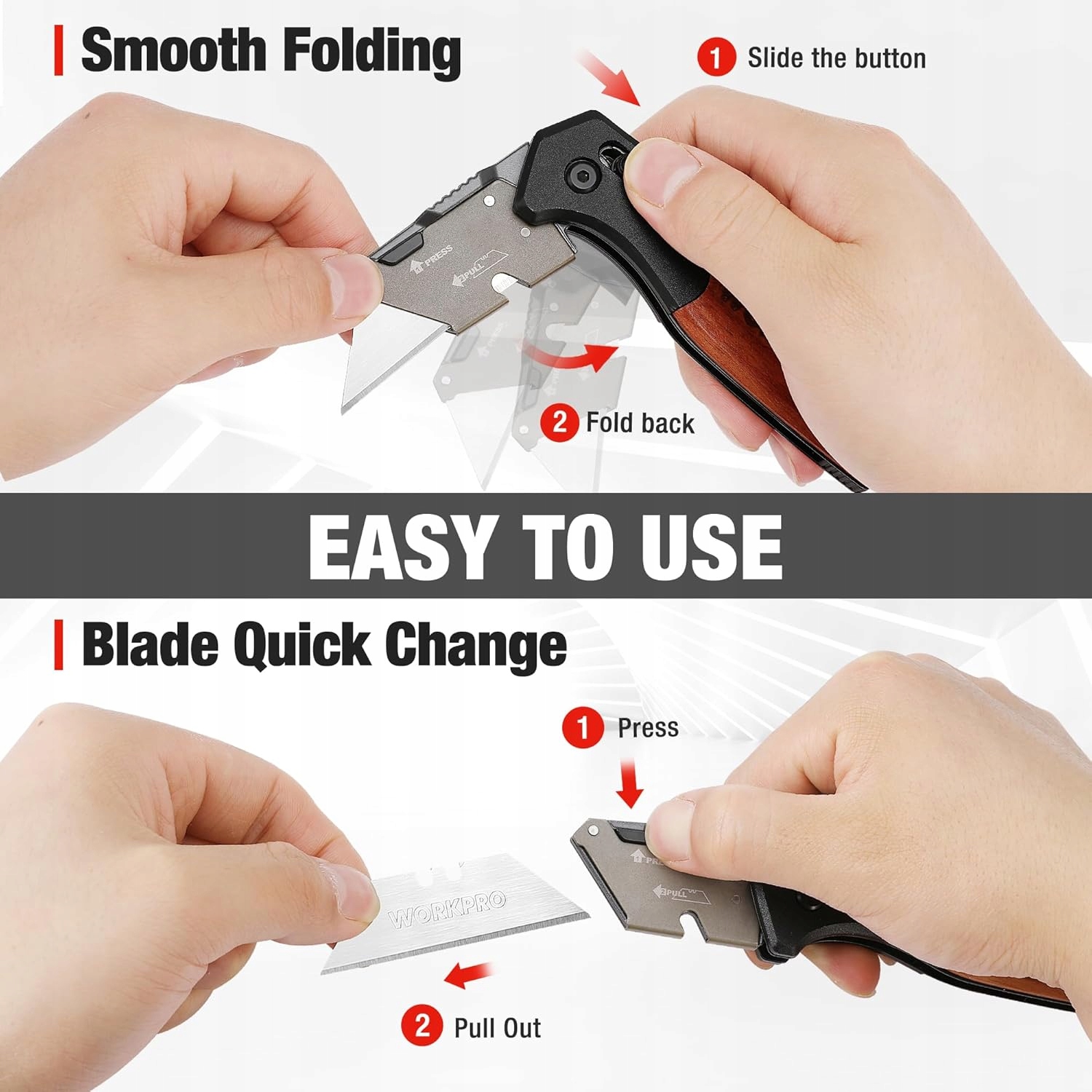 WorkPro Многофункциональный нож с деревянной ручкой + 10 лезвий SK5