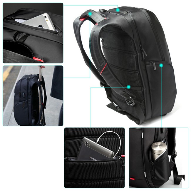 Рюкзак для ноутбука размером до 17,3 дюйма от Kingsons с символом KS3140W. В рюкзак поместится действительно большой ноутбук с максимальными размерами до 44 x 29 x 4 см. Очень качественно сделанный и продуманный рюкзак для ноутбука, выполненный из прочного и водонепроницаемого материала - нейлона с дополнительным скользким материалом, что облегчает чистку рюкзака (только черного цвета).Рюкзак имеет два основных отделения - одно плоское, предназначенное для ноутбука, а другое для остальных необходимых вещей.Рюкзак также имеет четыре внешних кармана на молнии.Один плоский карман спереди, два по бокам, идеально подходят для переноски блока питания или мышка, а сзади небольшой плоский карман - идеально подходит для документов.или кошелька.Внутри рюкзака есть несколько небольших отделений, поэтому в нем можно с комфортом носить большое количество вещей.Рюкзак дополнительно оснащен с внешним USB-портом, поэтому для зарядки телефона не нужно вынимать павербанк из рюкзака. Очень хорошее соотношение цена/качество. Рюкзак тщательно продуман и сшит с вниманием к деталям.