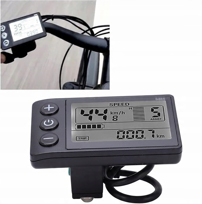 WYŚWIETLACZ LCD ROWERU ELEKTRYCZNEGO S866 24V 36V 48V Z WODOODPORNĄ WTYCZKĄ