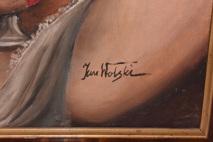Ян Вольски - женщина со стеклом - заманчивая сцена - нефтяная картина
