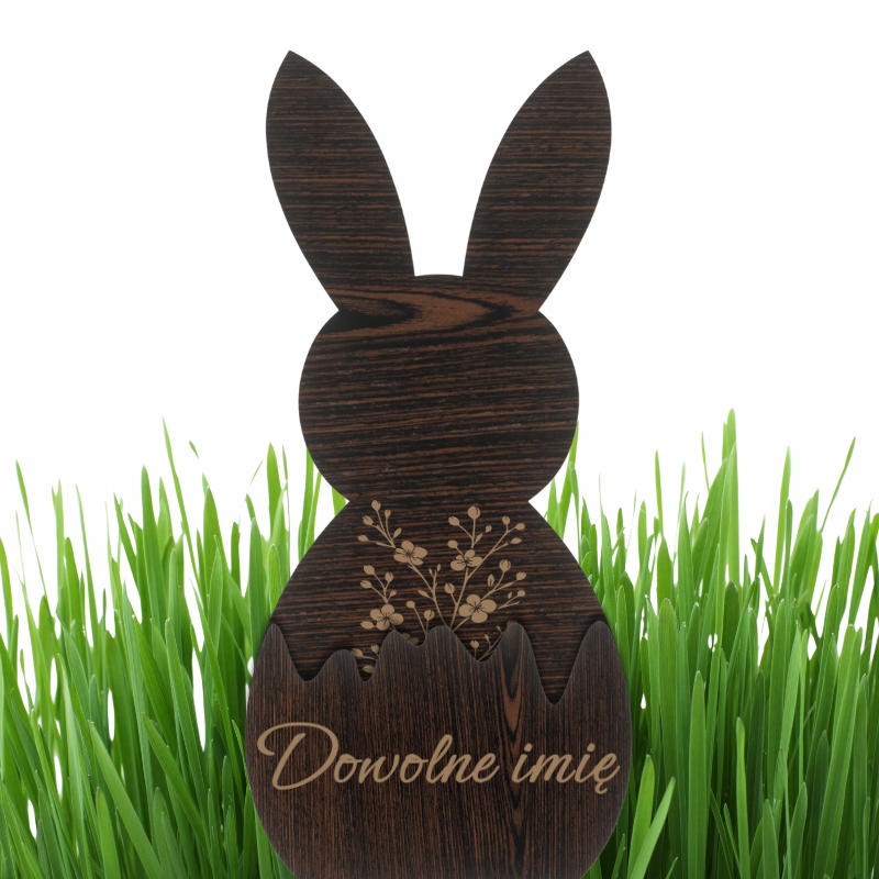 zając Стоя Пасхальное украшение Имя Скорупки с базой гравировки Oak Wenge