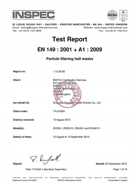 имеют подлинную объявление о соответствии и соответствуют европейскому стандарту EN149: 2001+A1: 2009.