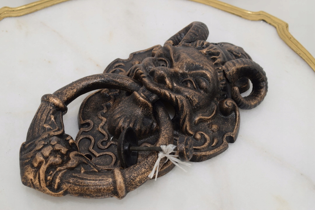 Чугунный дверной молоток - дьявол Маскарон - тревога на рингтоне для двери