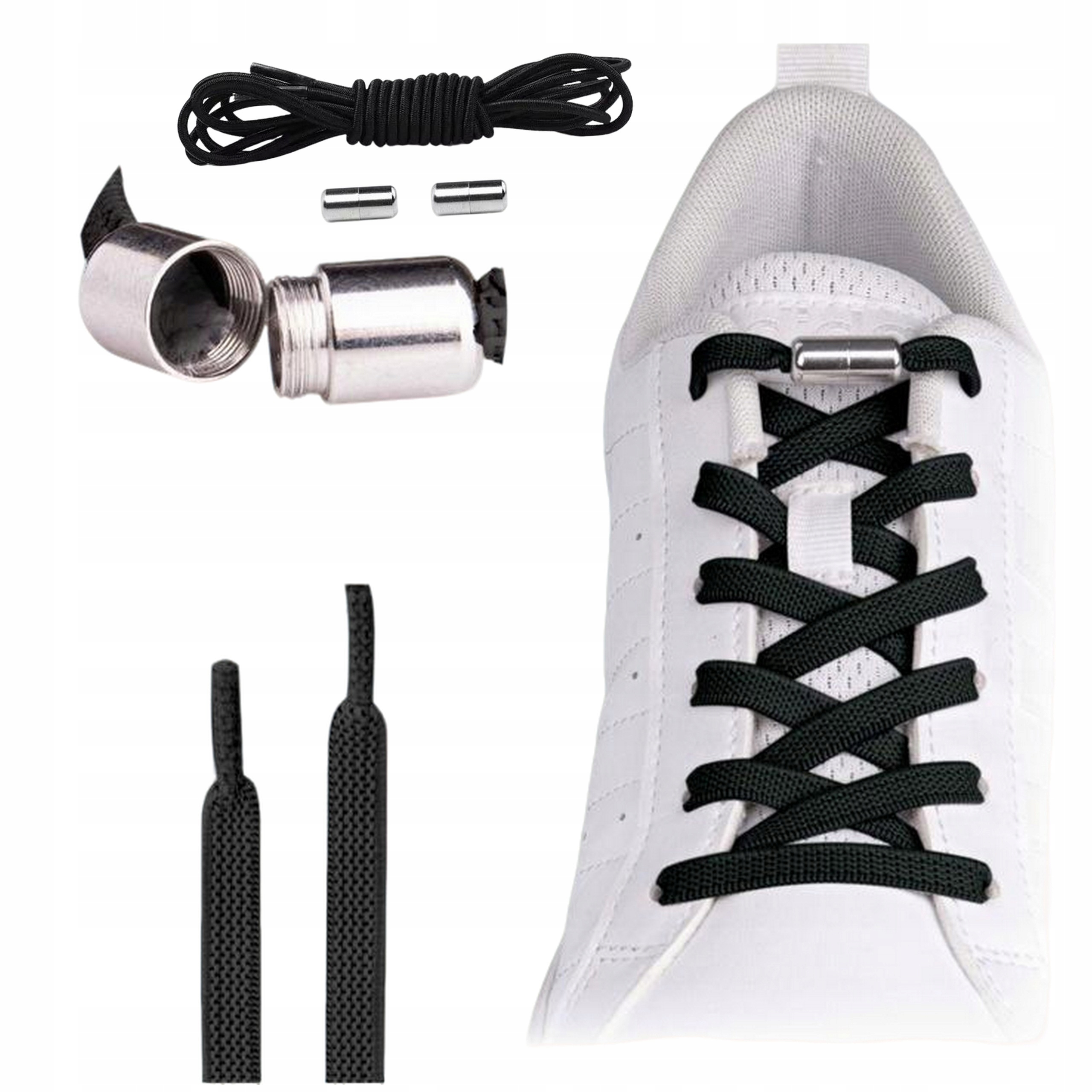 Шнурки без привязки к обуви гибкой с черной крепежкой