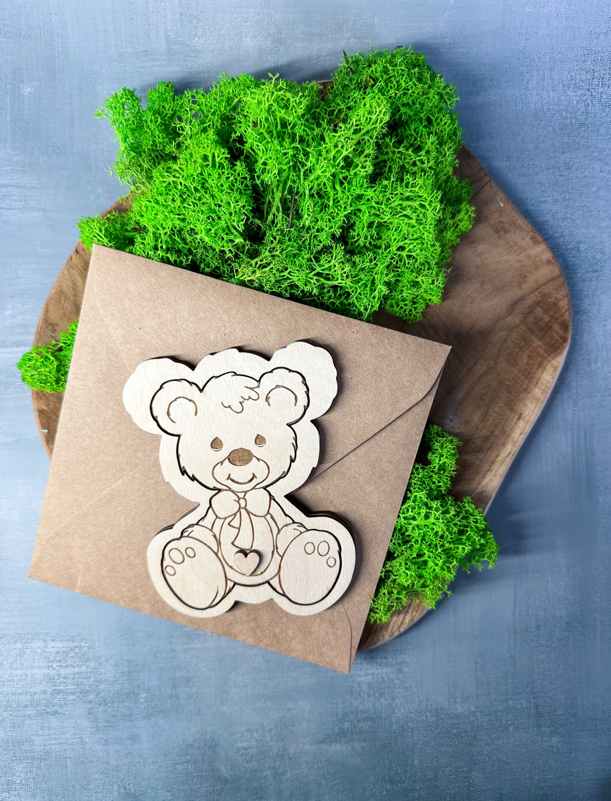 Этот плюшевый мишка в конверте готов для подарка будущим родителям.