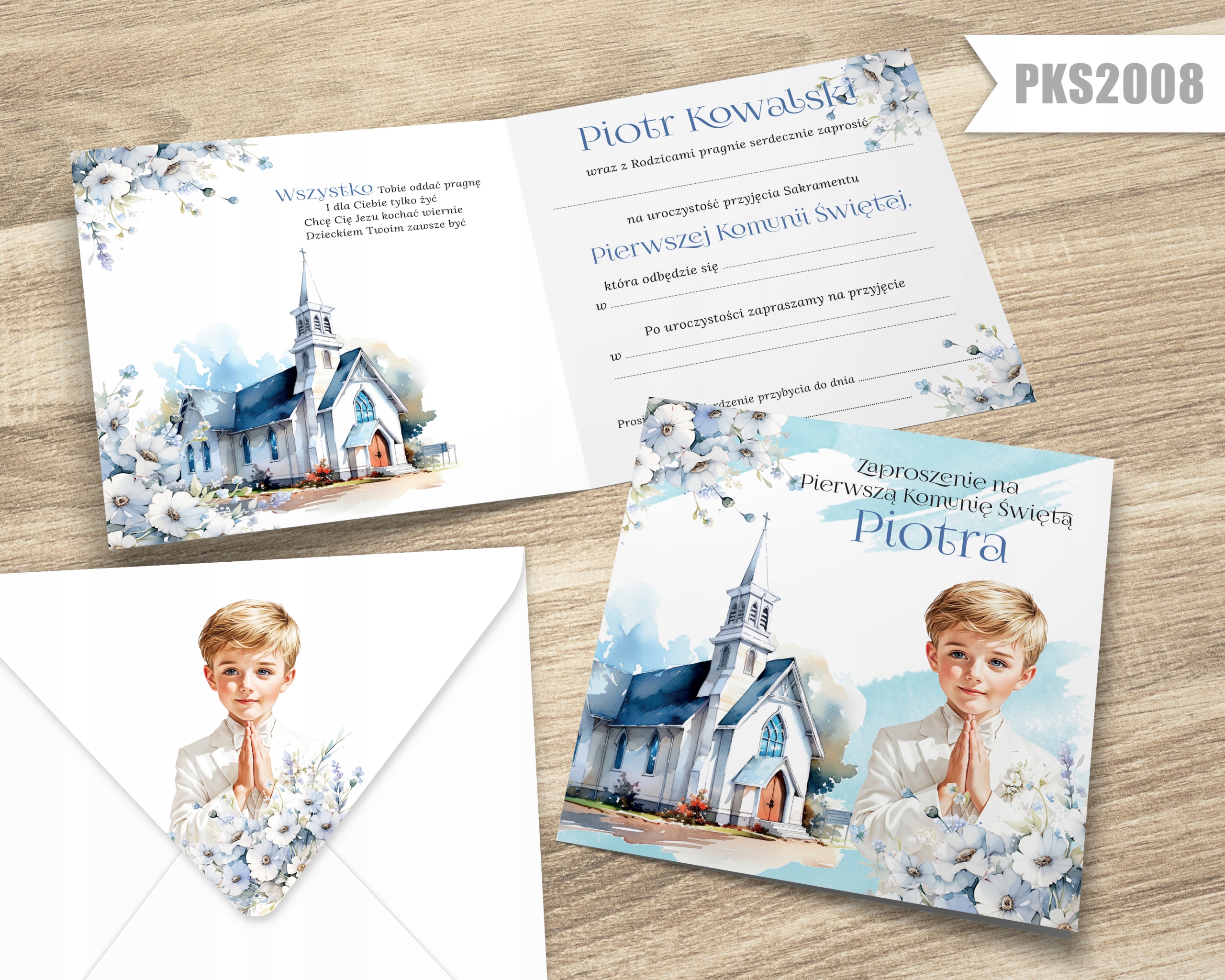 Приглашение к первому причастию. ИМЯ РЕБЕНКА И КОНВЕРТ С ПРИНТОМ