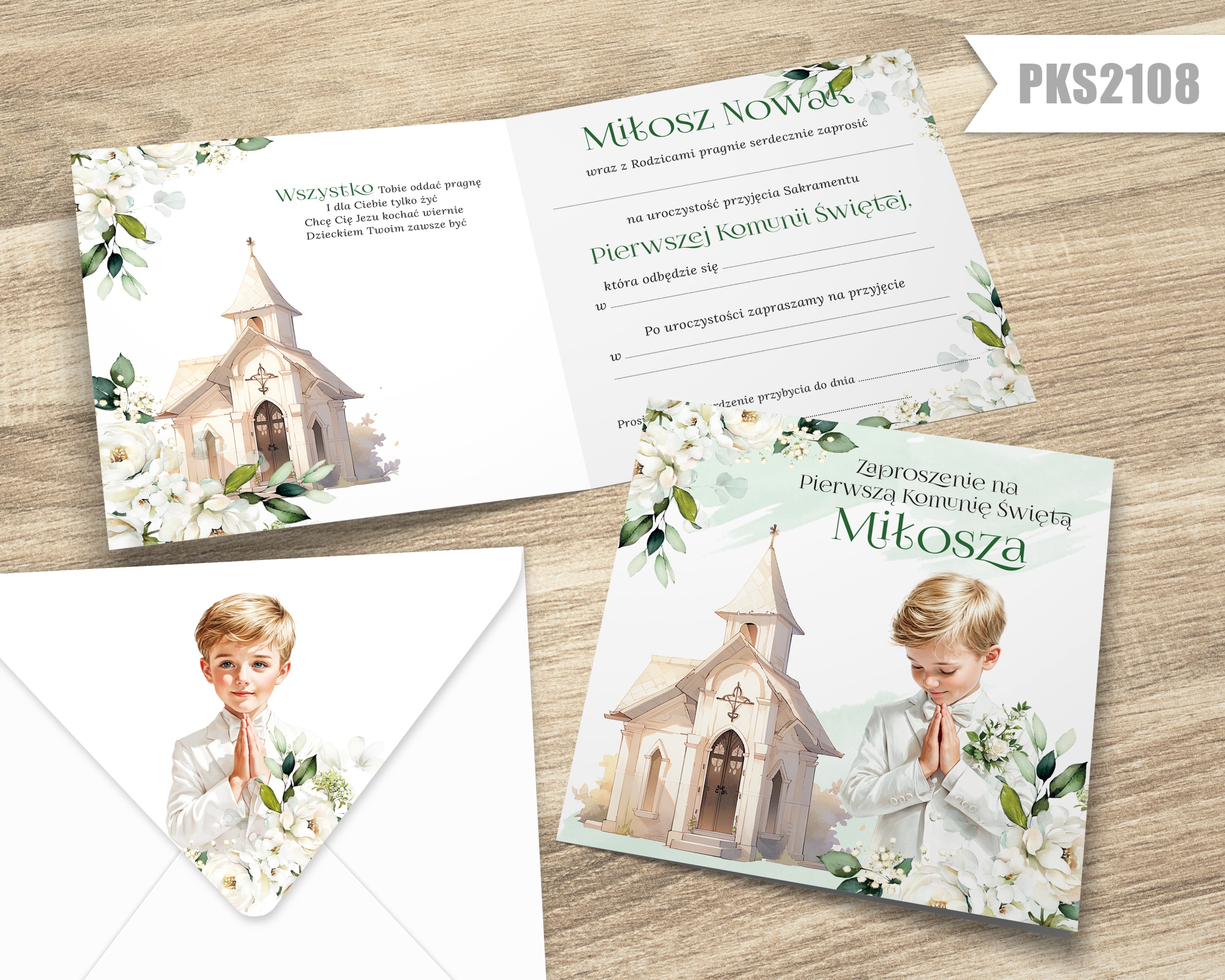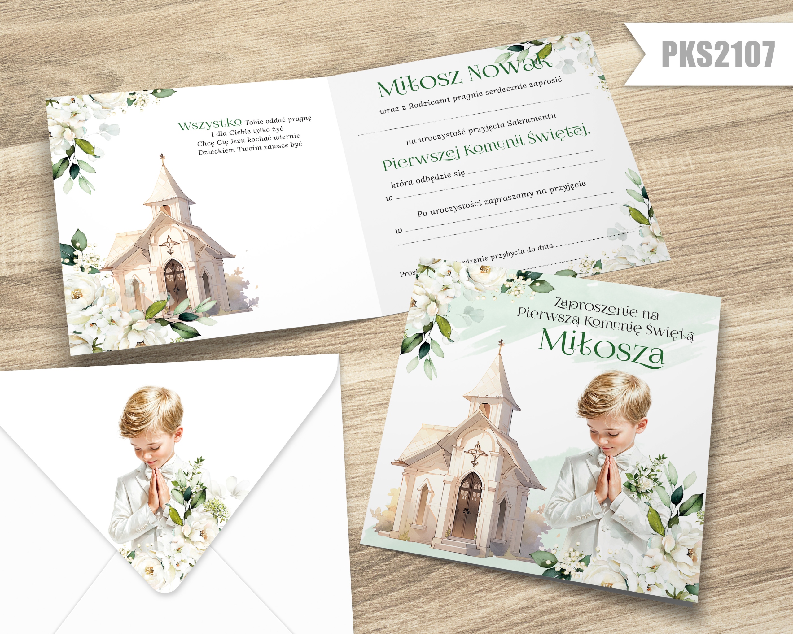 Приглашение к первому причастию. ИМЯ РЕБЕНКА И КОНВЕРТ С ПРИНТОМ