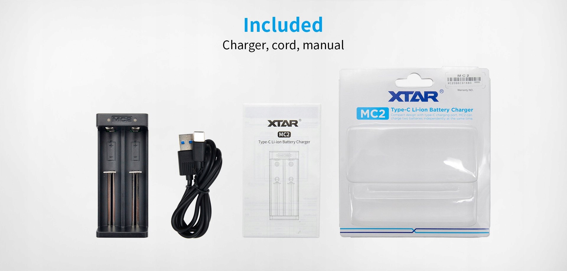 Зарядное устройство Xtar MC2 поставляется с кабелем micro USB и чехлом для защиты зарядного устройства во время транспортировки. В комплект не входит блок питания. Для питания зарядного устройства достаточно любого зарядного устройства с кабелем micro USB, например от телефона, или USB-разъема, или компьютера со свободным USB-разъемом. порт. Рекомендуемая мощность зарядного устройства — 1 А (1000 мА).