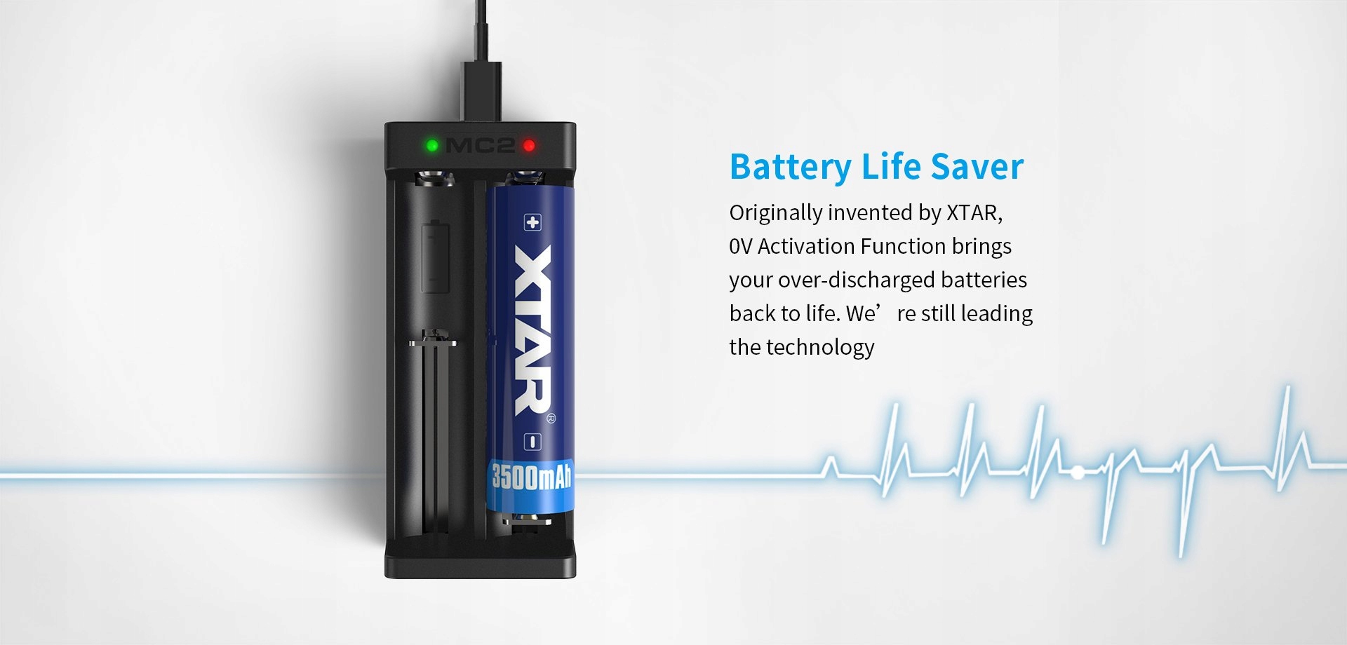Зарядное устройство Xtar MC2 имеет функцию реактивации глубоко разряженных аккумуляторов и аккумуляторов с напряжением 0В. Многие зарядные устройства, представленные на рынке, не способны заряжать такие аккумуляторы. Вот тут-то и пригодится зарядное устройство Xtar MC2, которое во многих случаях позволяет «спасти» такие аккумуляторы. Просто вставьте глубоко разряженную батарею в зарядное устройство MC2, как при обычной зарядке — зарядное устройство обнаружит разряженную батарею и попытается повторно активировать ее.