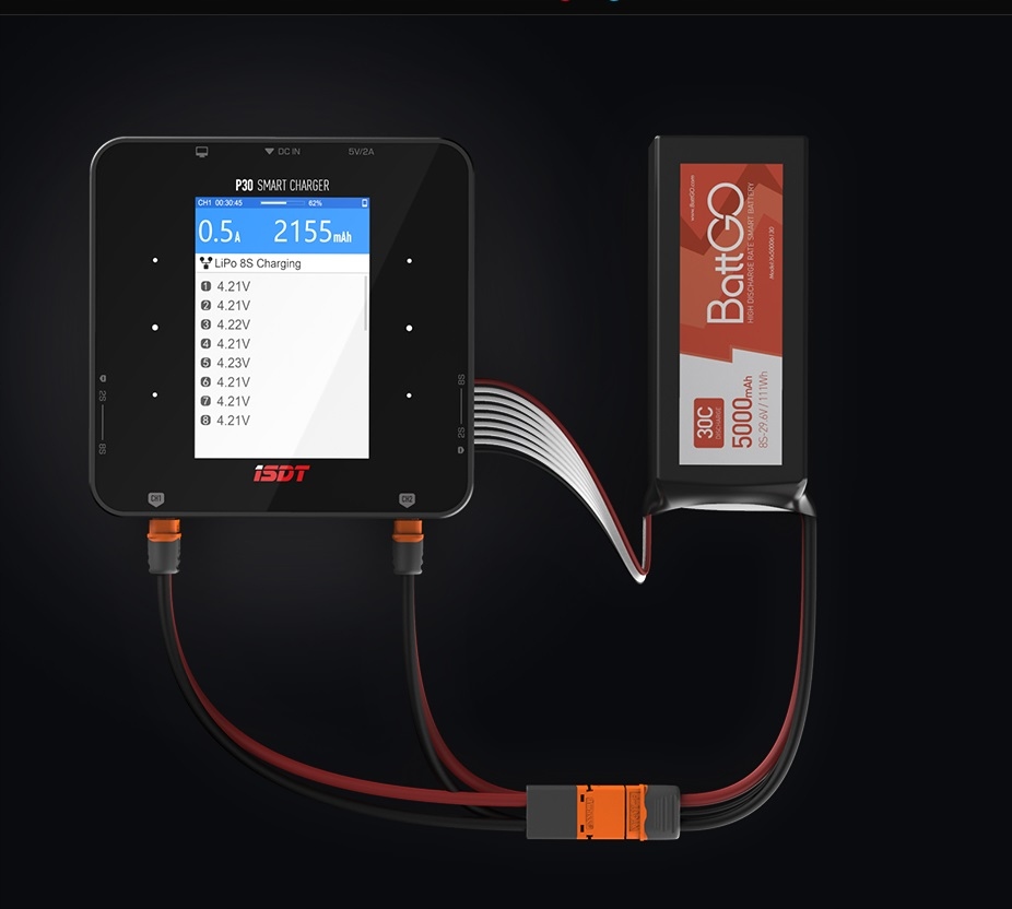 Двухканальное зарядное устройство iSDT P30 2000 Вт, 2x30 А, LiPo 2-8S