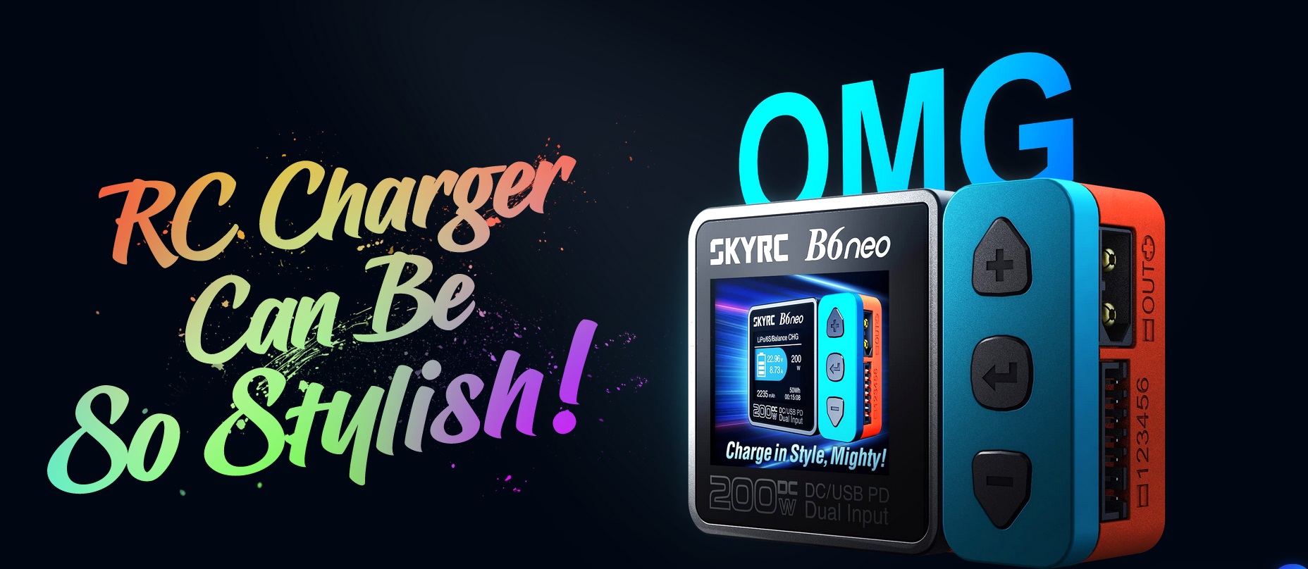 B6neo почти в четверть меньше своего предшественника, меньше кредитной карты, но при этом впечатляет. Корпус B6neo доступен в широкой цветовой гамме. Подключенный к источнику постоянного тока, B6neo может заряжать впечатляющую мощность до 200 Вт, а через вход USB-C PD он поддерживает мощность до 80 Вт. Это значительное улучшение по сравнению с B6, который может заряжать только до 50 Вт от источника постоянного тока и не поддерживает вход PD, который стал стандартной необходимостью в домашнем хозяйстве. SkyRC снова поднял планку в области радиоуправляемых зарядок!