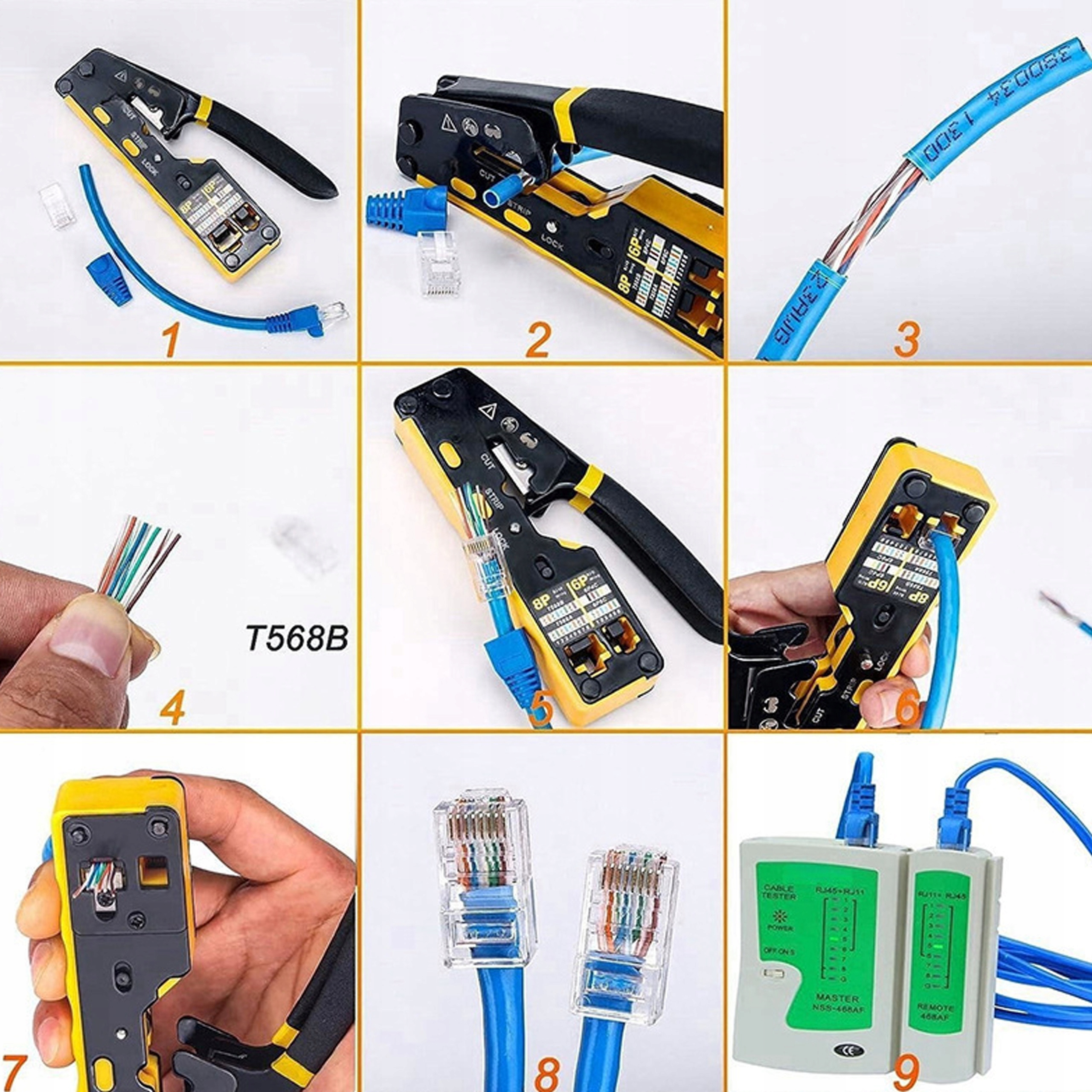 ✅ Cut, загрузка и сжимание Cat5 Кабели, Cat5e и Cat6/6a