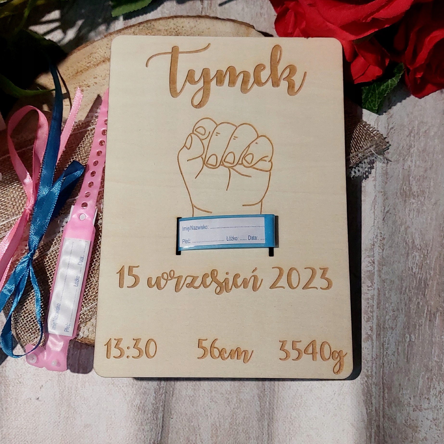 Наше деревянное свидетельство о рождении в виде деревянной визитки с местом для больничной повязки – это прекрасная идея подарка ребенку и его родителям, например, по случаю крещения или рождения. Это также уникальный сувенир и оригинальное украшение детской комнаты, а также отличная идея для хранения/демонстрации родильного бандажа.