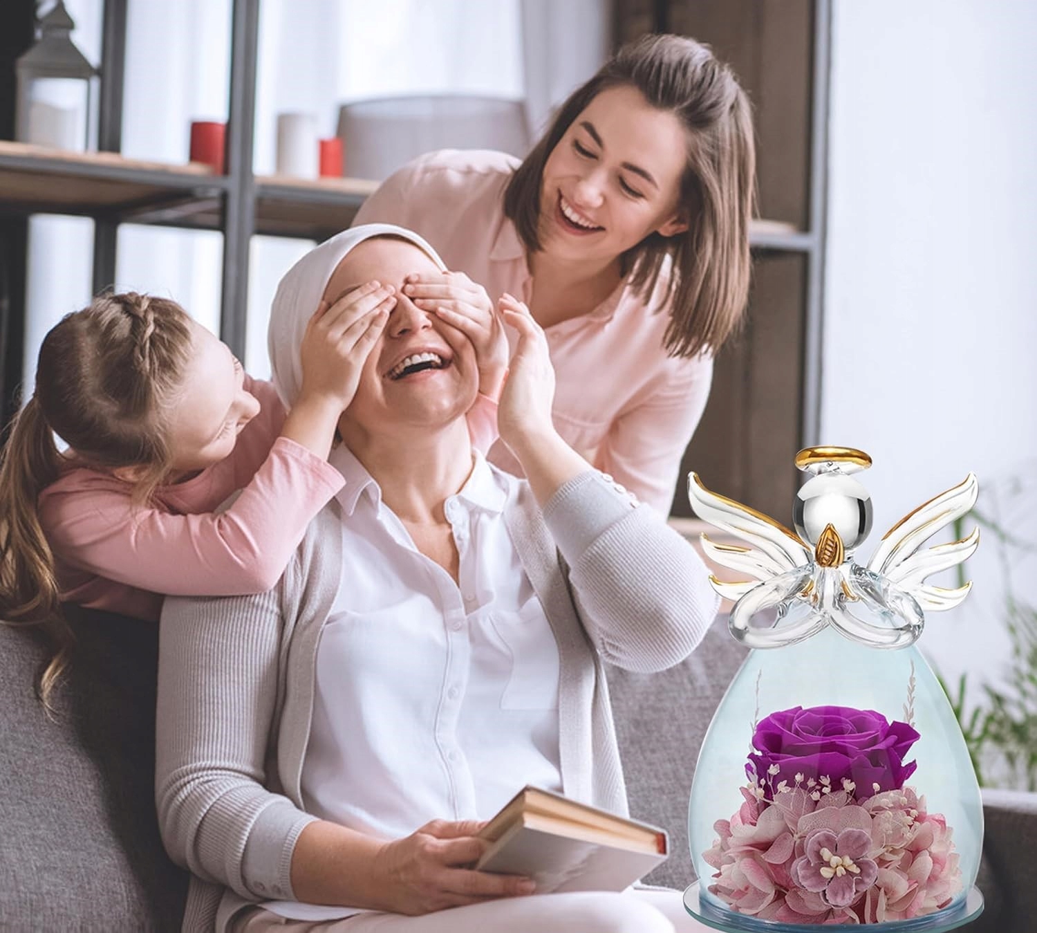 Подарки с эвечным ангелом розой для женщин, подарки с розовым цветом для мамы. Роза в стеклянном куполе идеальна и безупречна. Он так полон бесконечной надежды и красоты, как радуга. Подарок розы привносит для женщин бесконечную любовь и красоту, думая о вас, подарки для женщин, подарки для матерей. Цветы для женщин, подарки для матерей, свадебные подарки, подарки для выпуска и т. Д.