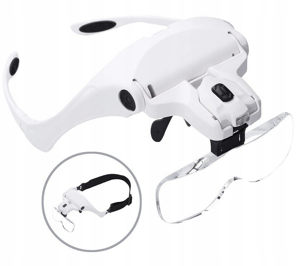 Очки имеют 5 сменных линз с увеличением 1,0х, 1,5х, 2,0х, 2,5х, 3,5х