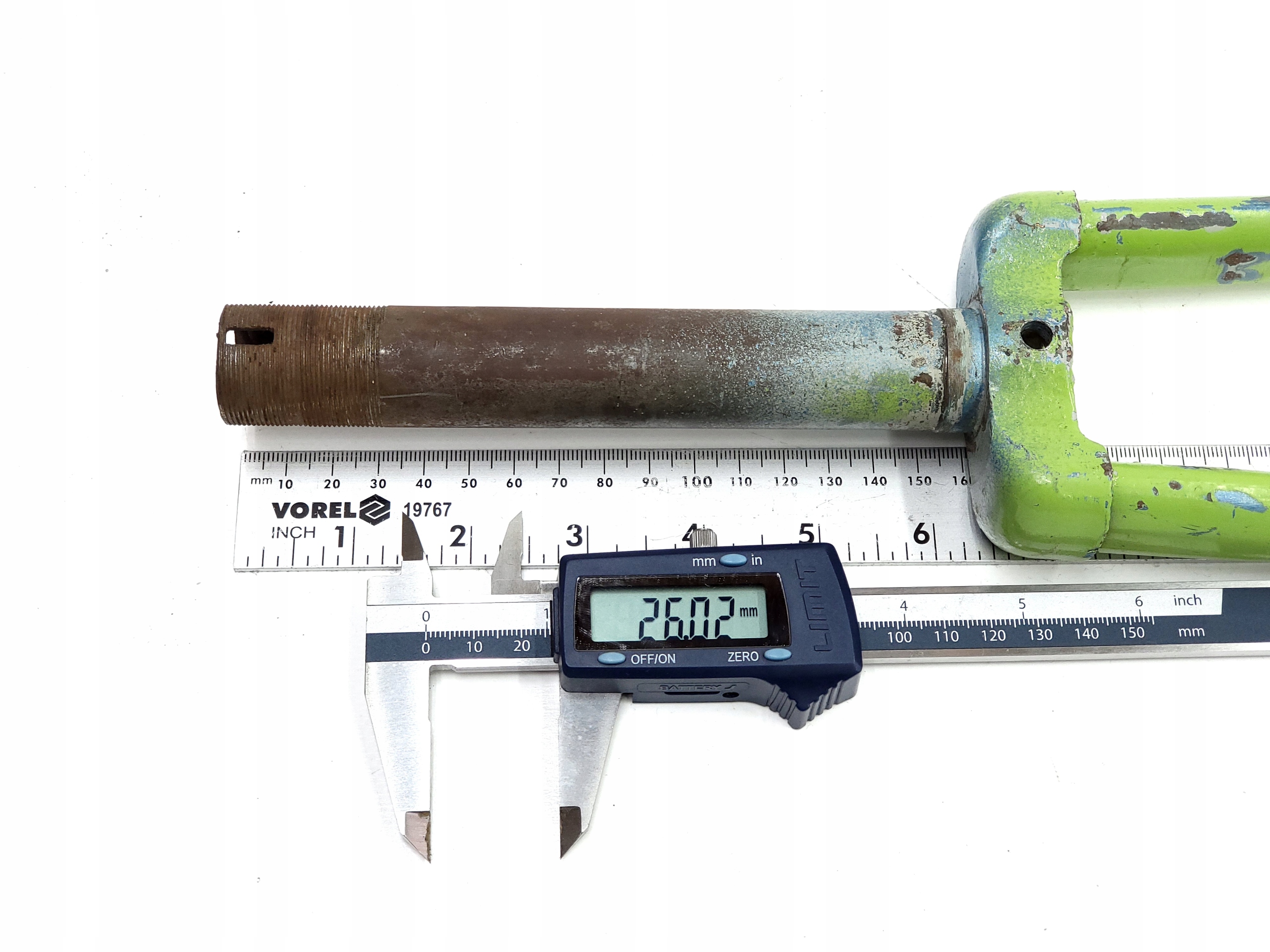 зеленая вилка 26 дюймов для Romet Universal Bicycles Prl. Длина стерильной трубы: 160 мм Длина потока: 30 мм Диаметр резьбы: 26,02 мм Общая длина (управляющая труба + вилка): 530 мм. h1>