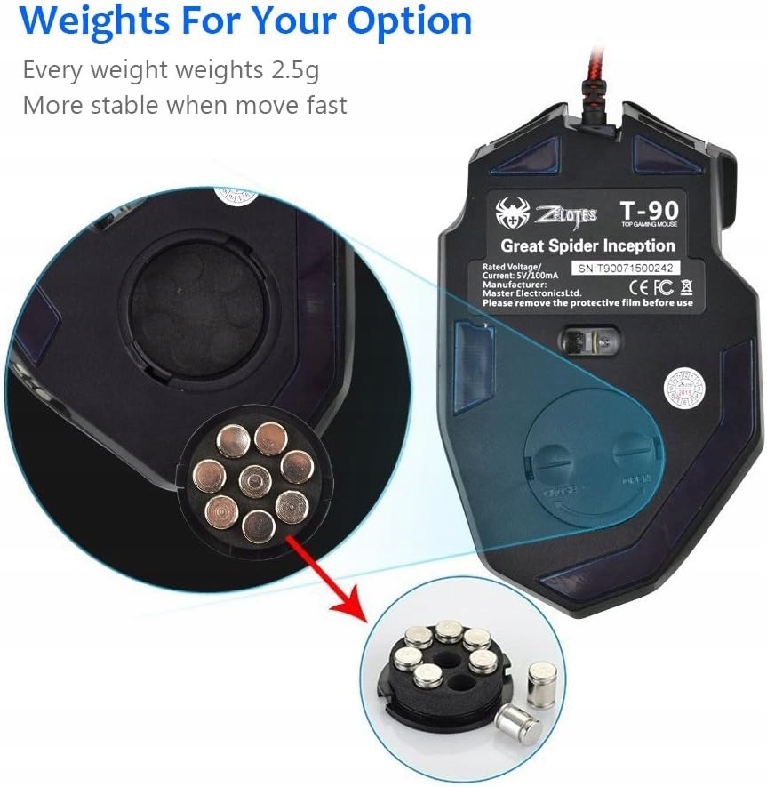 Zelotes T90 Gaming Mouse Computer Mouse 9200 DPI с USB -разъемом