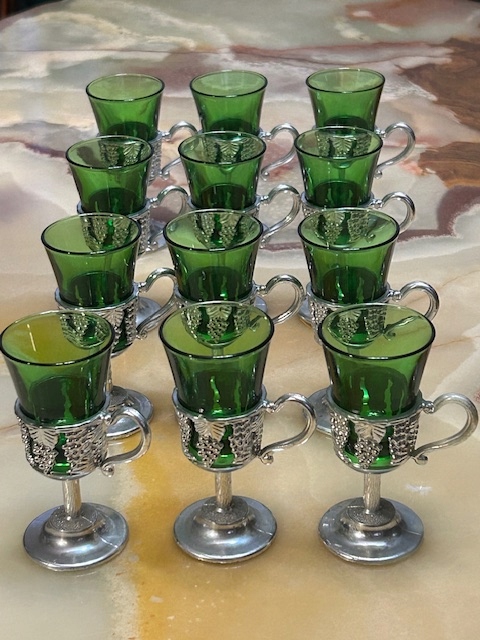 ZIELONE KIELISZKI KPL 12 SZT KOSZYCZKI LATA 60/70 TE