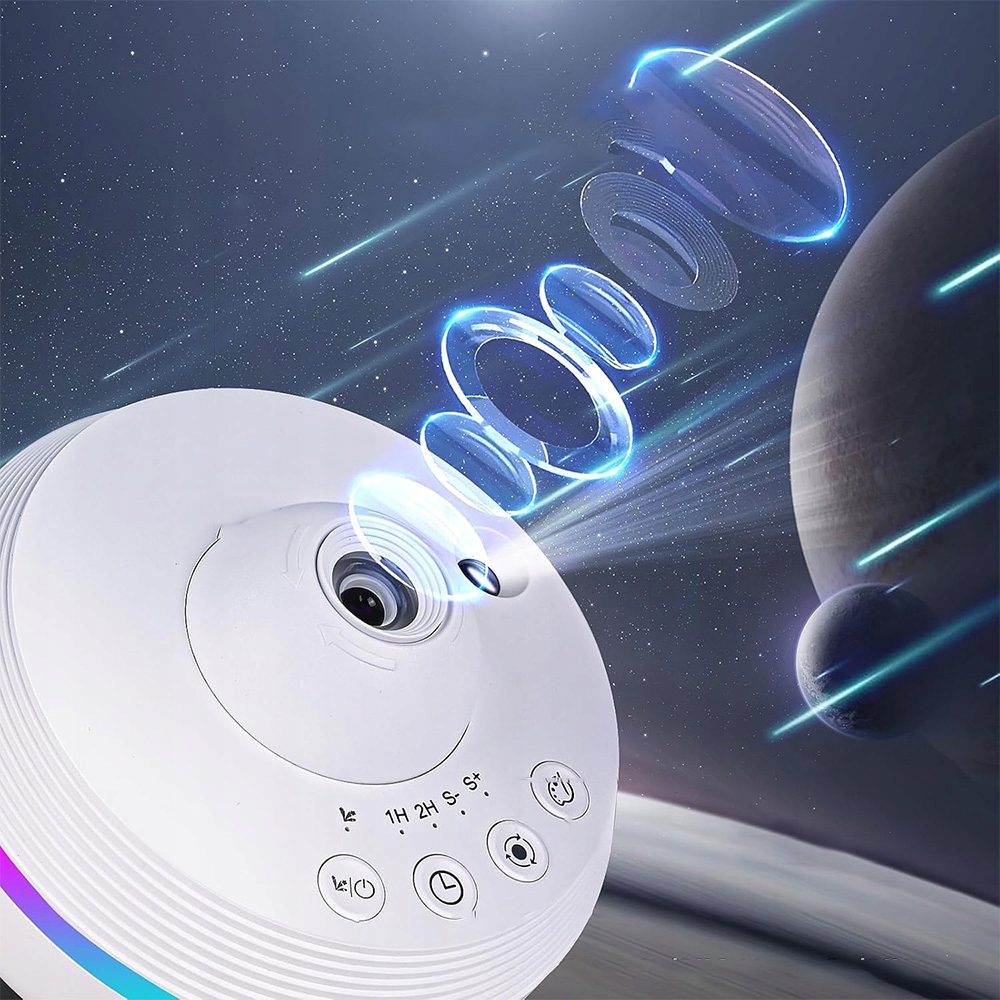 Улучшенный галактический проектор более четкий, чем предыдущее поколение, и позволяет вам погрузиться в мир. Благодаря этому проектору, планетарий HD Galaxy может быть отрегулирован, повернув верхнюю ручку регулировки, чтобы получить четкое изображение. Поддерживает проекционное расстояние до 3 м и площадь проекции 12,5-23,75 м². Звезды, разбросанные по всей комнате, обеспечивают волшебное легкое шоу в комнате.