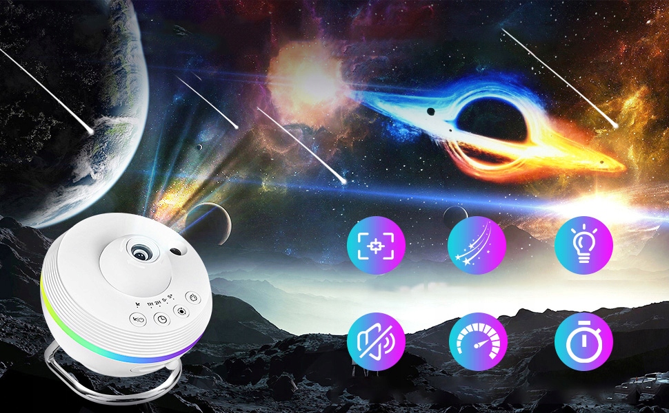 Your life space with our most modern planetarium projector with 13 charming scenes, such as the moon (built -in), solar system, earth, black hole, milky way, milky way, orion, ngc6357 and collision of creatures, Observable universe, динозавр, море. Рождество и Рождество и Валентина. Измените свою комнату на космические чудеса благодаря этому проектору Starry Sky.