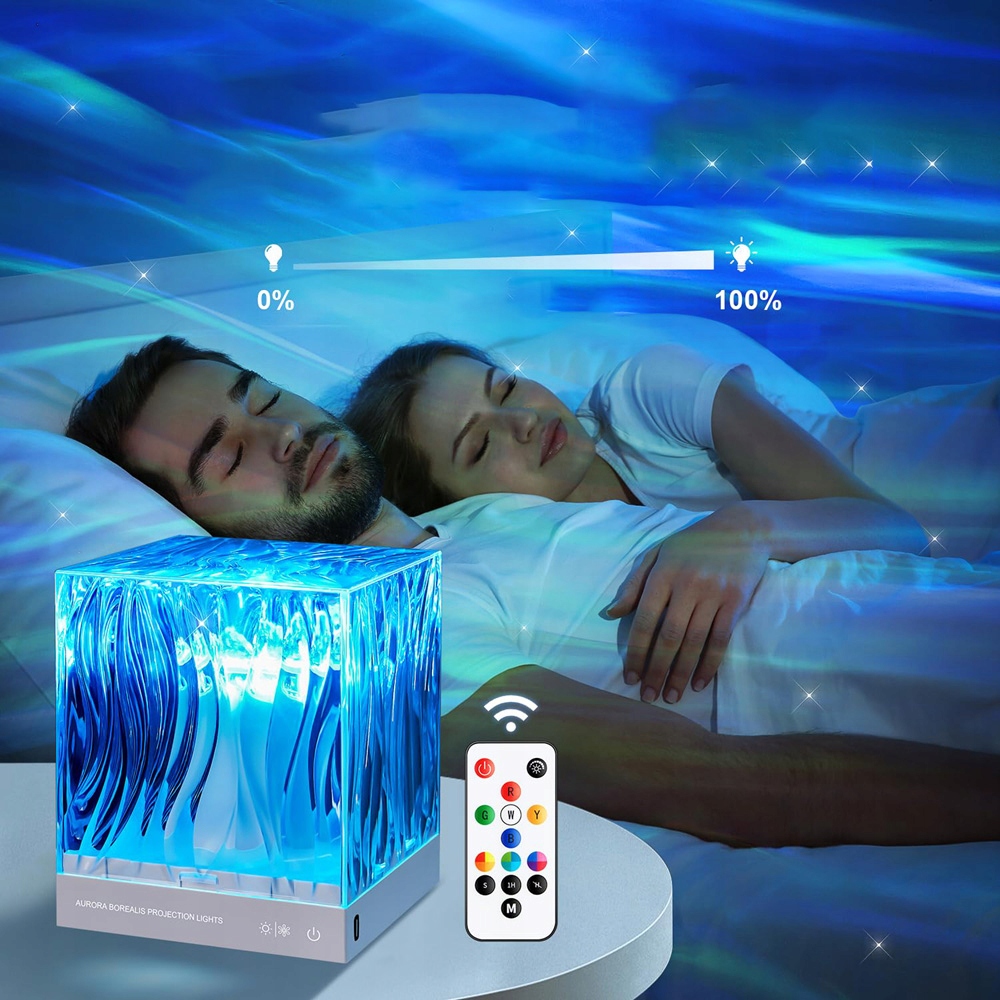 Проектор Starry Sky для детей использует уникальную структуру куба с 5 светящимися сторонами для освещения спальни под углом 360 градусов. Проектор Starry Sky предлагает детям 18 различных режимов цвета и непрерывного контроля яркости. Эта звезда звездного неба была специально разработана для детей и может стимулировать их воображение и креативность, когда они смотрят шоу Aurora проектора Aurora, лежащего в постели.