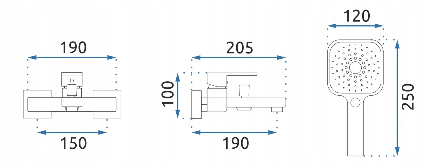 - Содержимое комплекта: Смеситель, Душевой шланг, Душевая трубка, Чехлы, Кулачки, Настенное крепление трубки