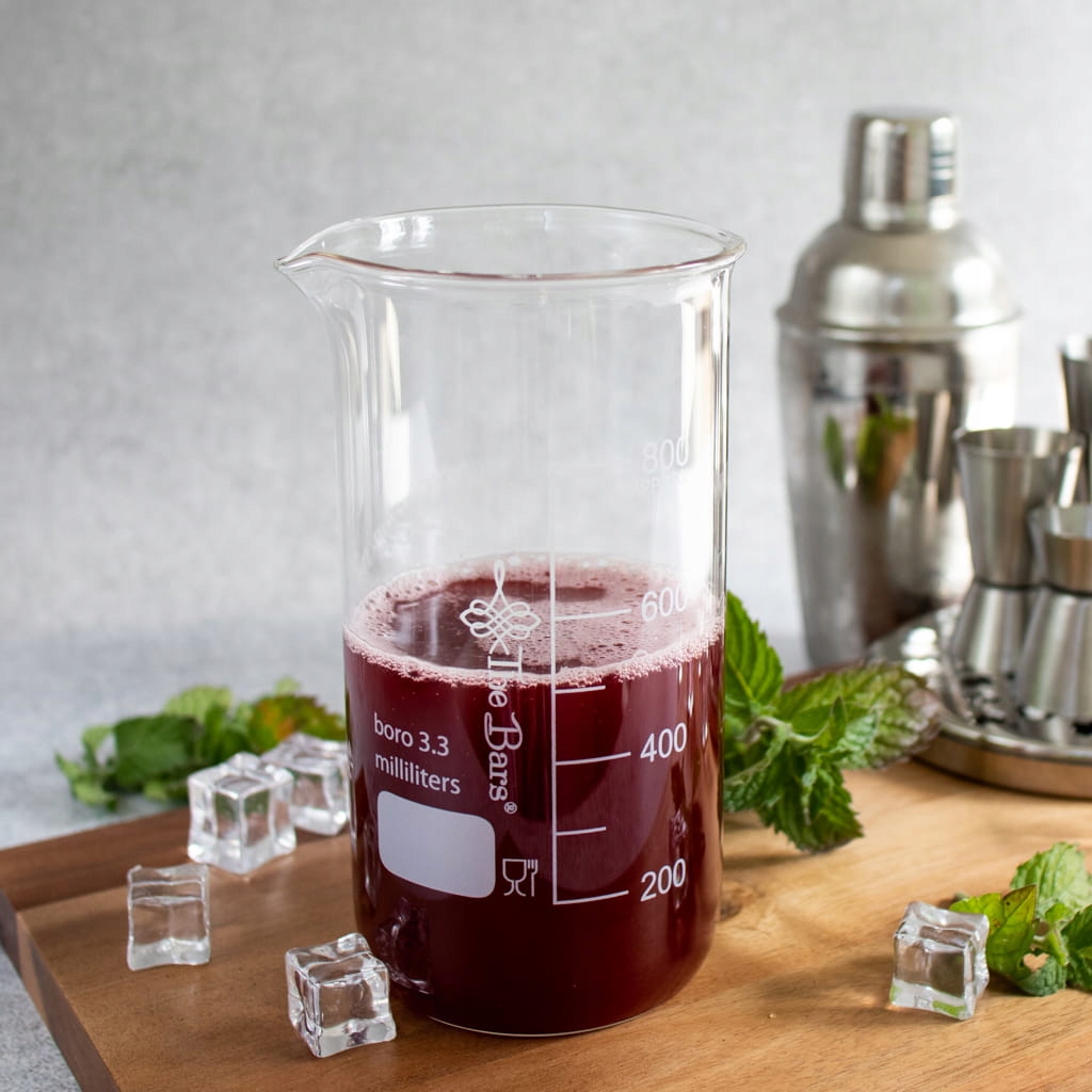 - Большая измерительная чашка имеет маркеры 200, 400, 600 и 800 мл - это также стеклянное стекло барменного стекла