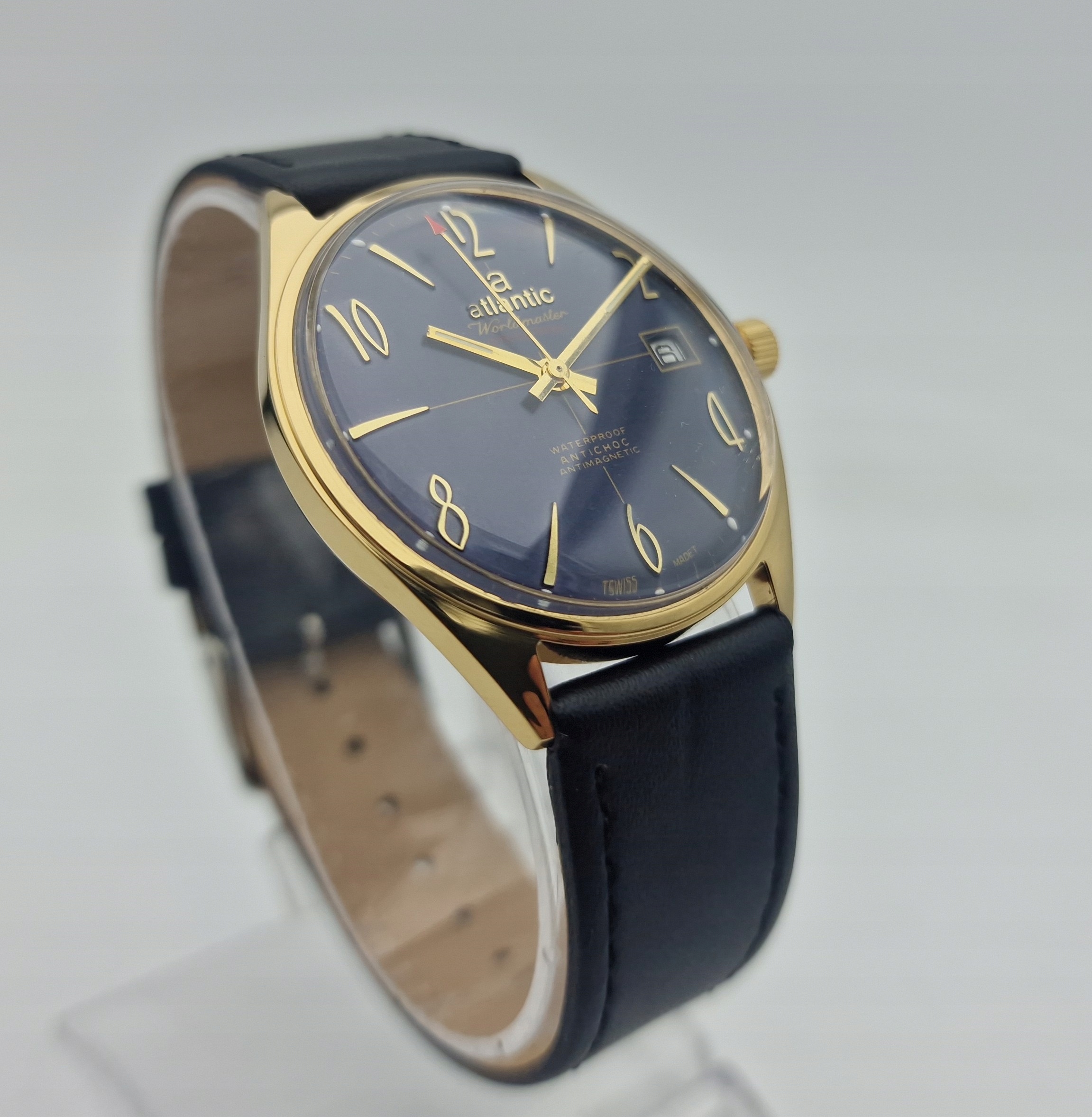 ZŁOCONY MĘSKI ZEGAREK ATLANTIC WORLDMASTER ORIGINAL LATA 70-TE - IDEAŁ