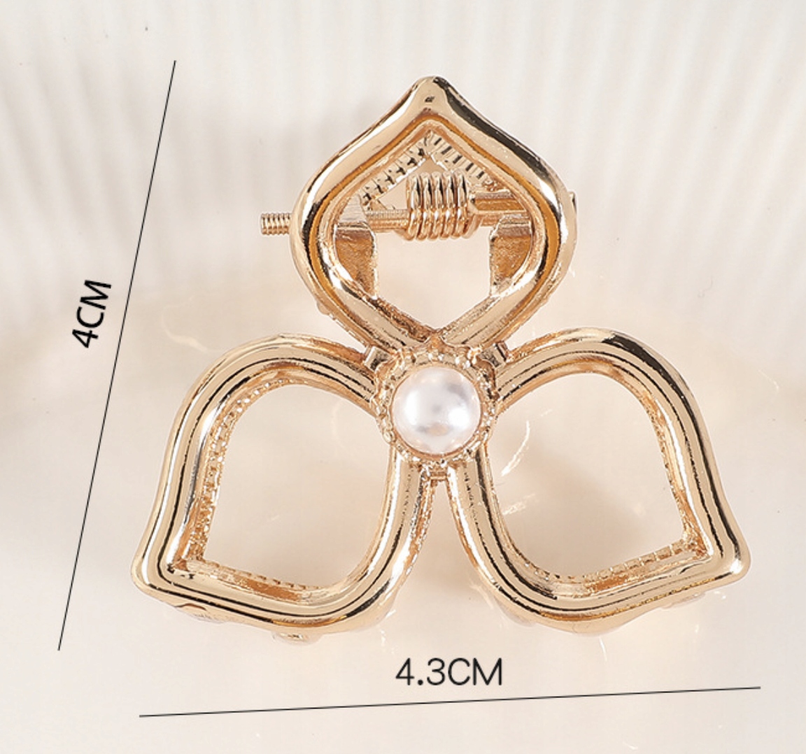 Элегантная металлическая заколка с декоративной жемчужиной в форме цветка станет стильным дополнением вашей прически.