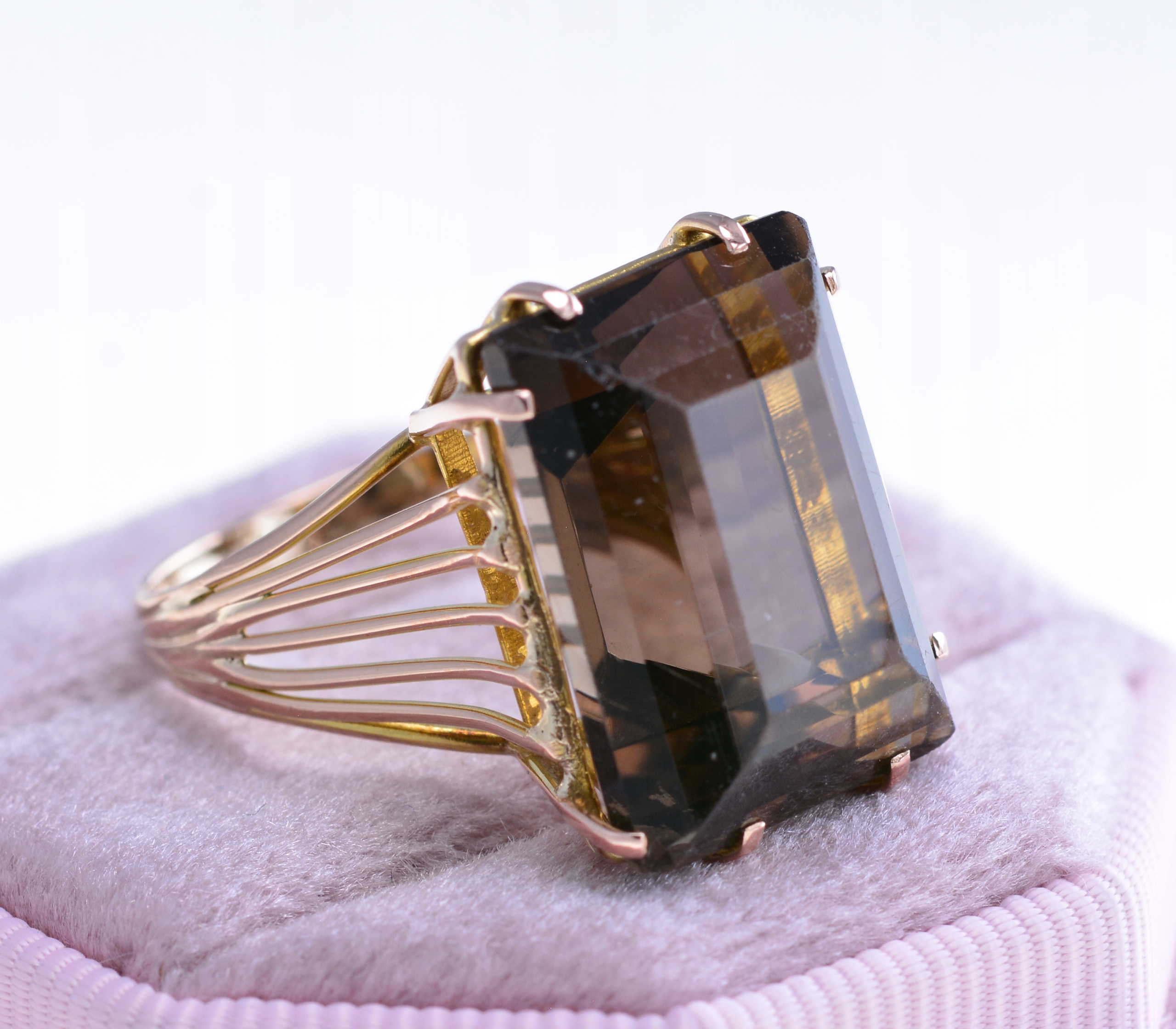Золотое 14 -километровое кольцо с дымовым кварцем