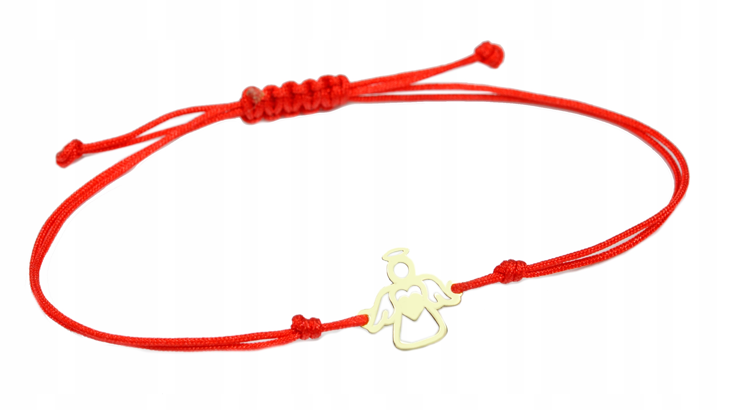 Браслет для девочки на красной нити с ангелочком. Изготовлен из прочной нити и золота 585 пробы (14 карат). Потянув за веревочки, вы регулируете длину браслета, благодаря чему его можно подогнать под свое запястье. Тонкое и нежное, оно дополнит любой стиль