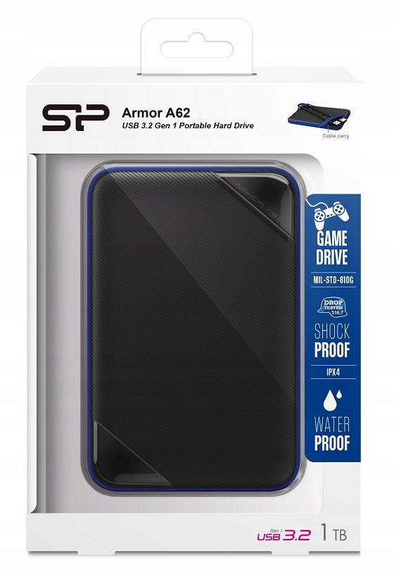 SILICON POWER Armor Game Drive Внешний диск A62, портативный диск HDD 1 ТБ, 2,5 дюйма, USB 3.2, PS4, Xbox One (SP010TBPHD62SS3B), черный, синий Этот вопрос не дает покоя многим геймерам, и при наличии накопителя A62 у вас есть только один ответ: Да! Накопитель A62 емкостью до 5 ТБ специально разработан для геймеров, желающих пополнить свою коллекцию игр. Вы можете сохранить в среднем до 125 игр без ущерба для памяти консоли.
