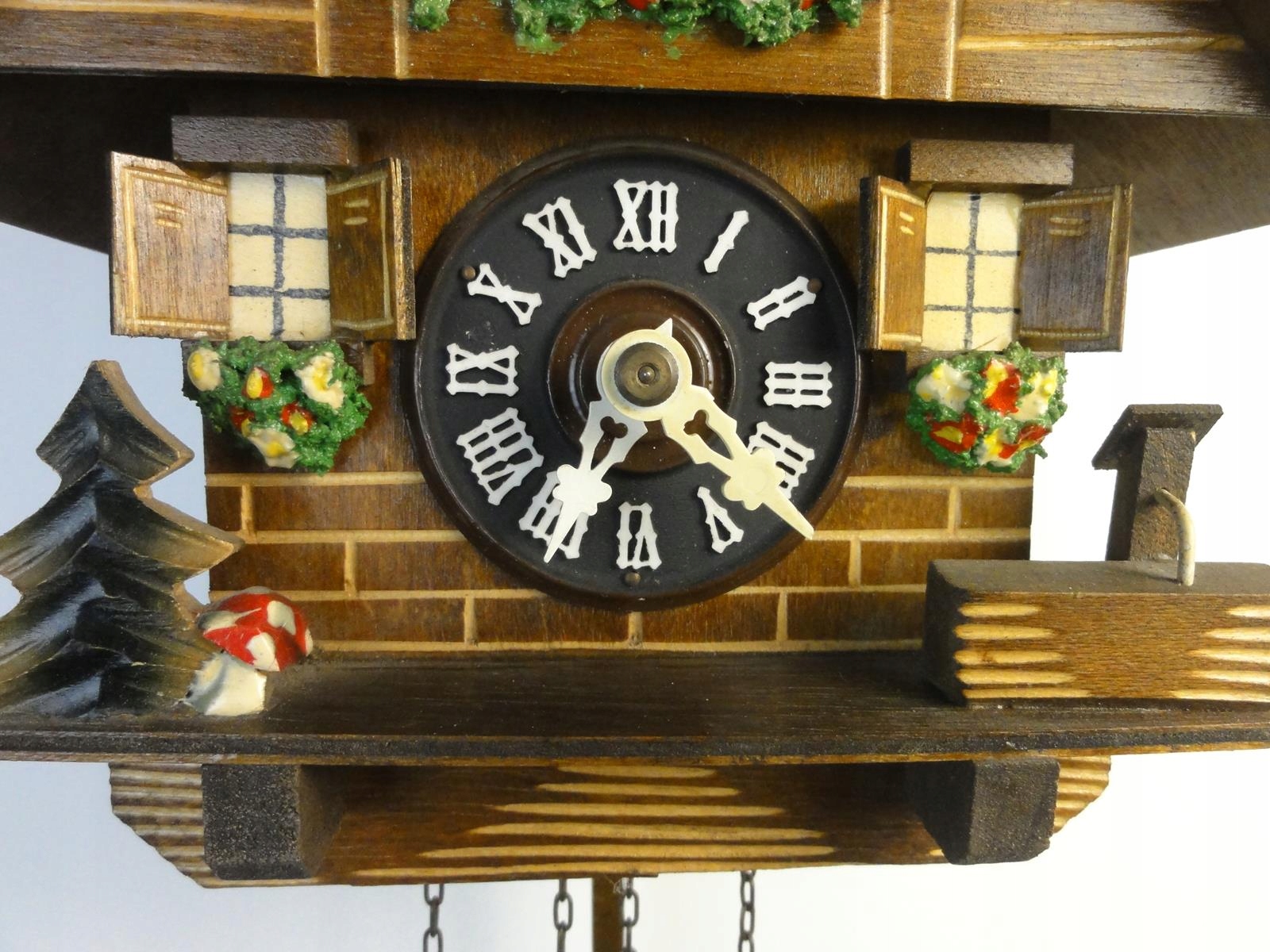 * латунный механизм с ежедневным заводом, полностью функциональный, работает точно и объявляет полные и полные часы под кукушку, кукушку и звон гонга,
