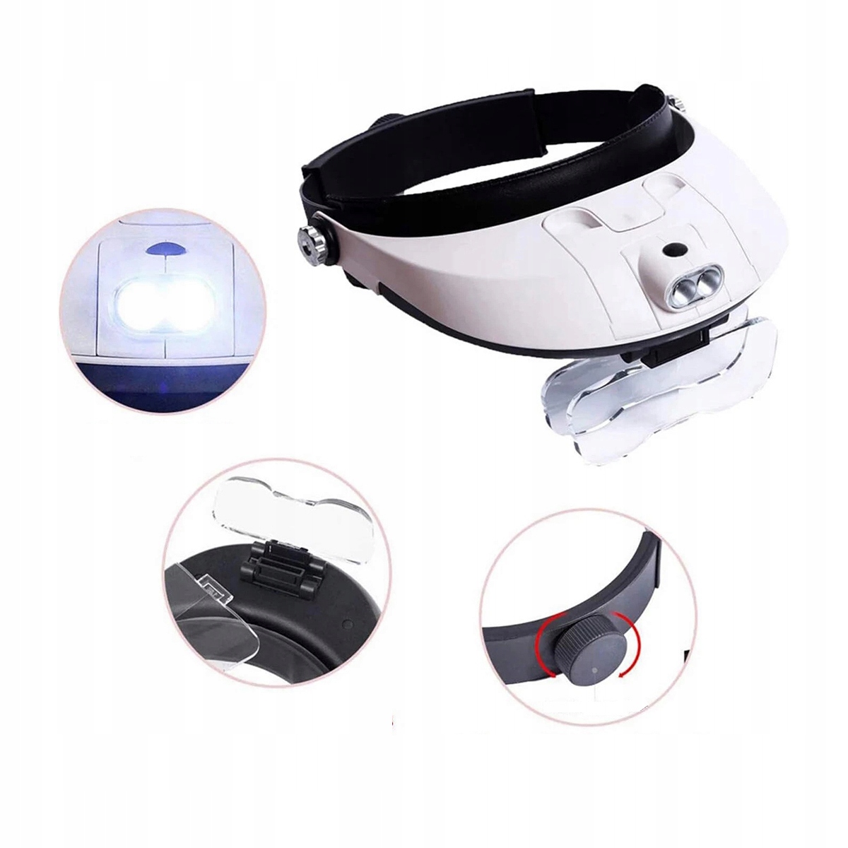 Лупа для головы с повязкой на голову, усилитель ювелирных изделий со светодиодным освещением, увеличительным стеклом, 5 линз h1>
