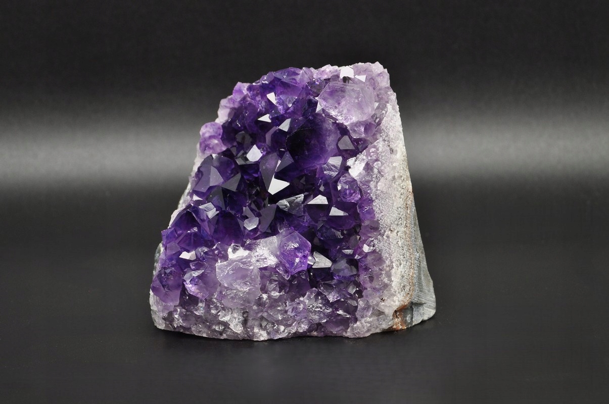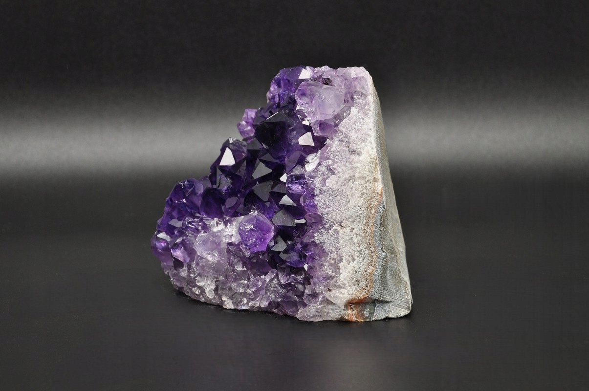 натуральний amethyst з темним кольором, дуже хорошою якістю. Прекрасний зразок для колекції та для подарунка. Сирі кристали, шліфовані сторони.