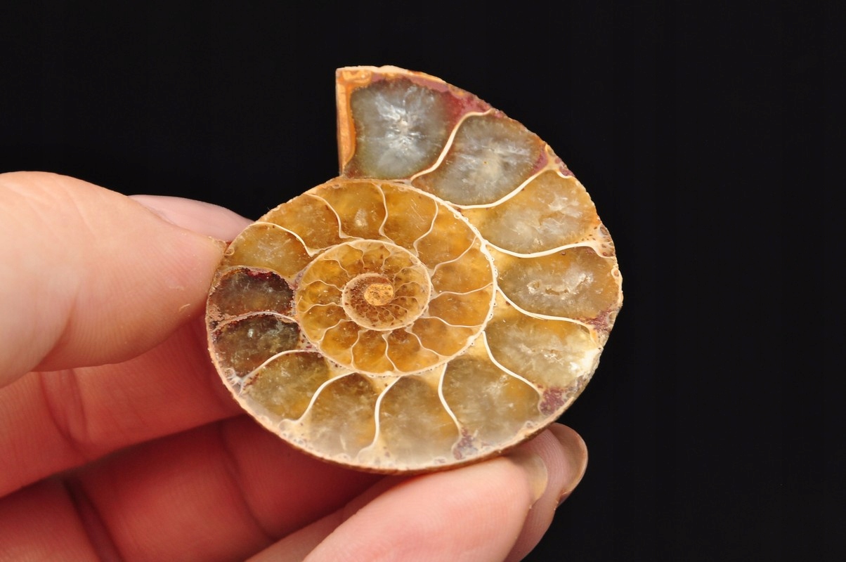 Аммоніти , амоніт (Ammonaidea) - підгрупа вимерлих головоногих (цефалопода), як правило, з симетричною, плоскою -імпортованою скоринкою. Нечисленні типи мали незвичайні форми, наприклад Проста оболонка, спіраль, згорнута вертикально, спіраль з незручними поворотами. Вони трапляються в скелях морського походження від періоду від Девона до кінця крейди. Деякі з окремих камер відкриті та наповнені багатим набором бежевих сірого та коричневого кальцитового кристалів, з перегородками між кожною камерою.