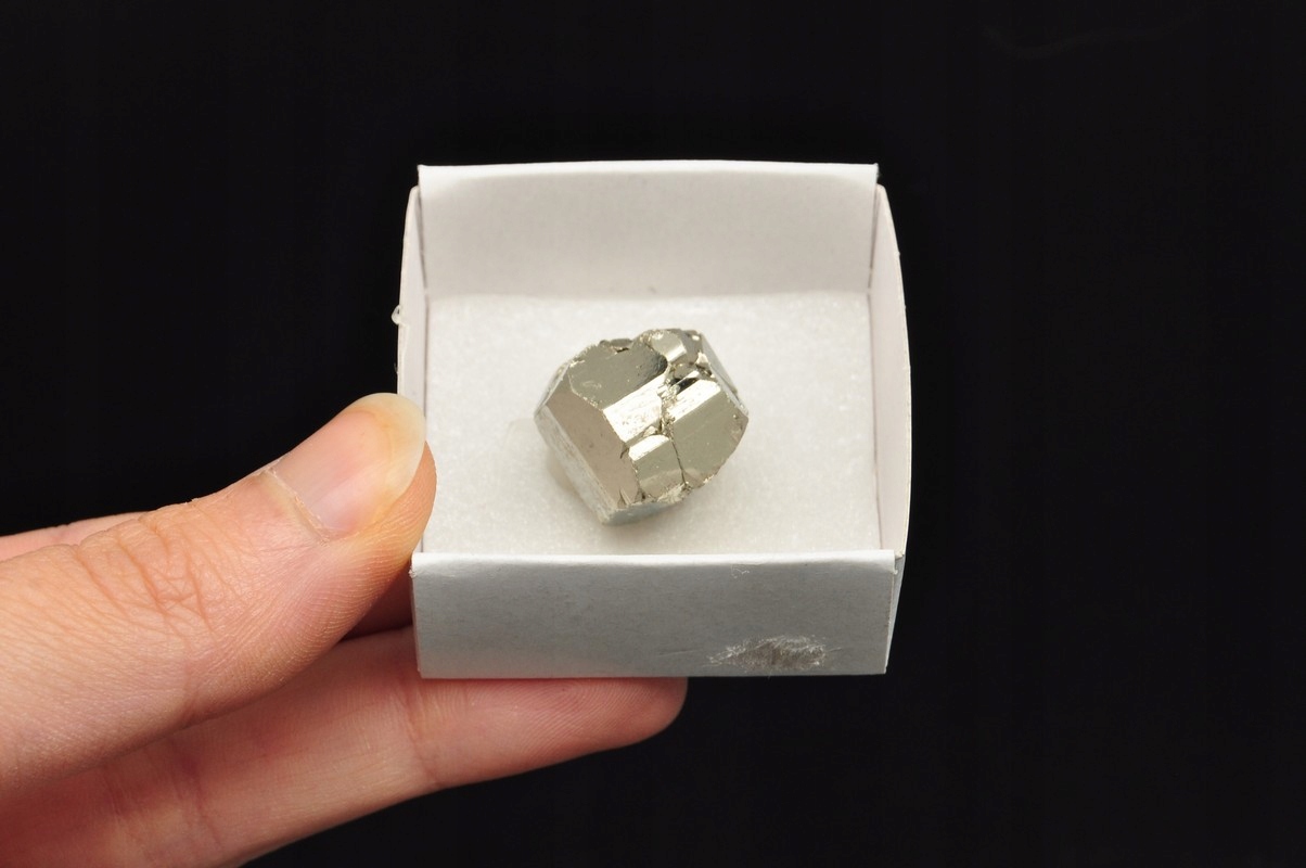 Натуральний куб пірит у вигляді небесного, приклеєного до коробки. Ідеальний зразок для колекції та для подарунка, додаткова якість.