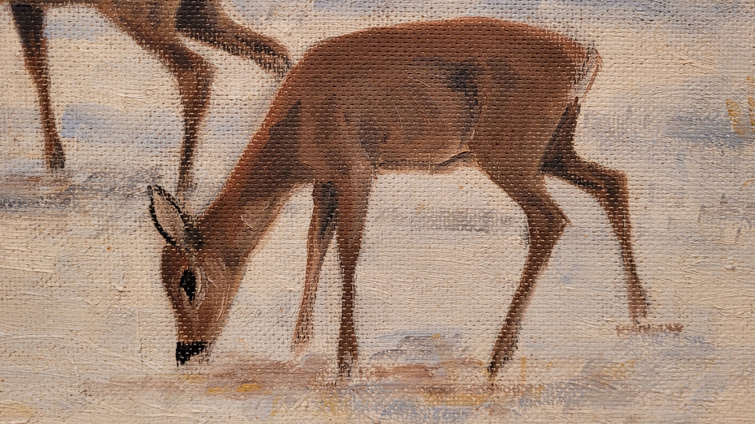 Тема продажу - це прекрасна, стара картина нафти "олень на снігу".